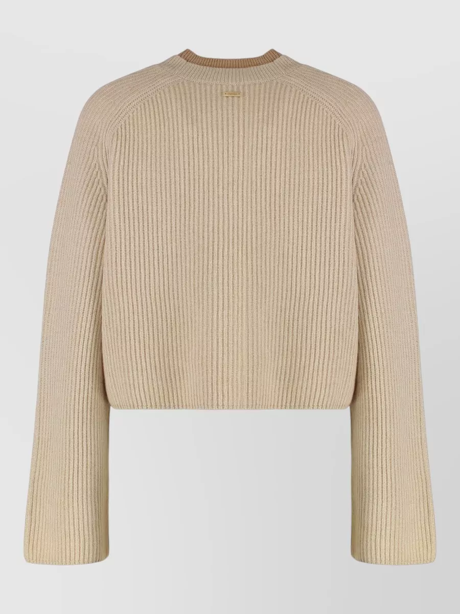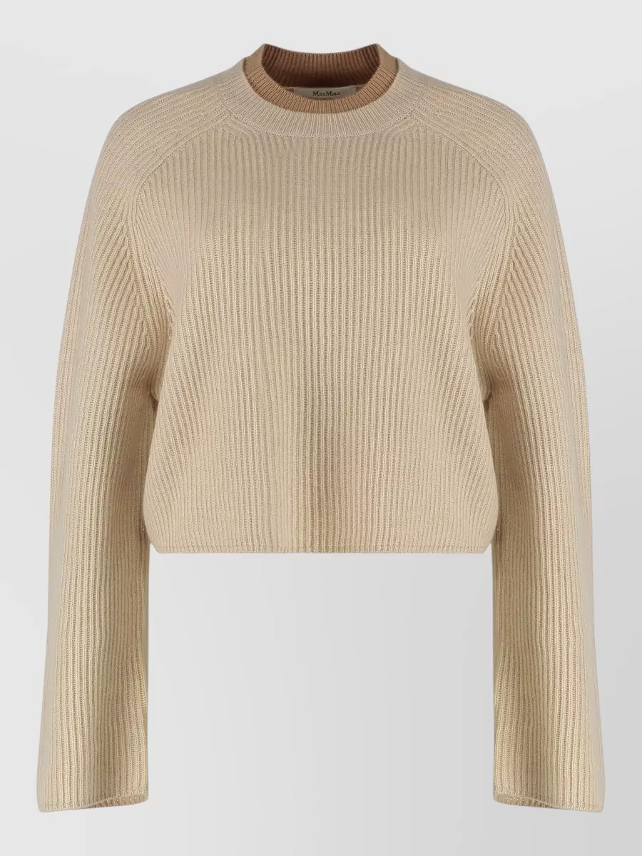 Wool cashmere cropped ribbed knit top