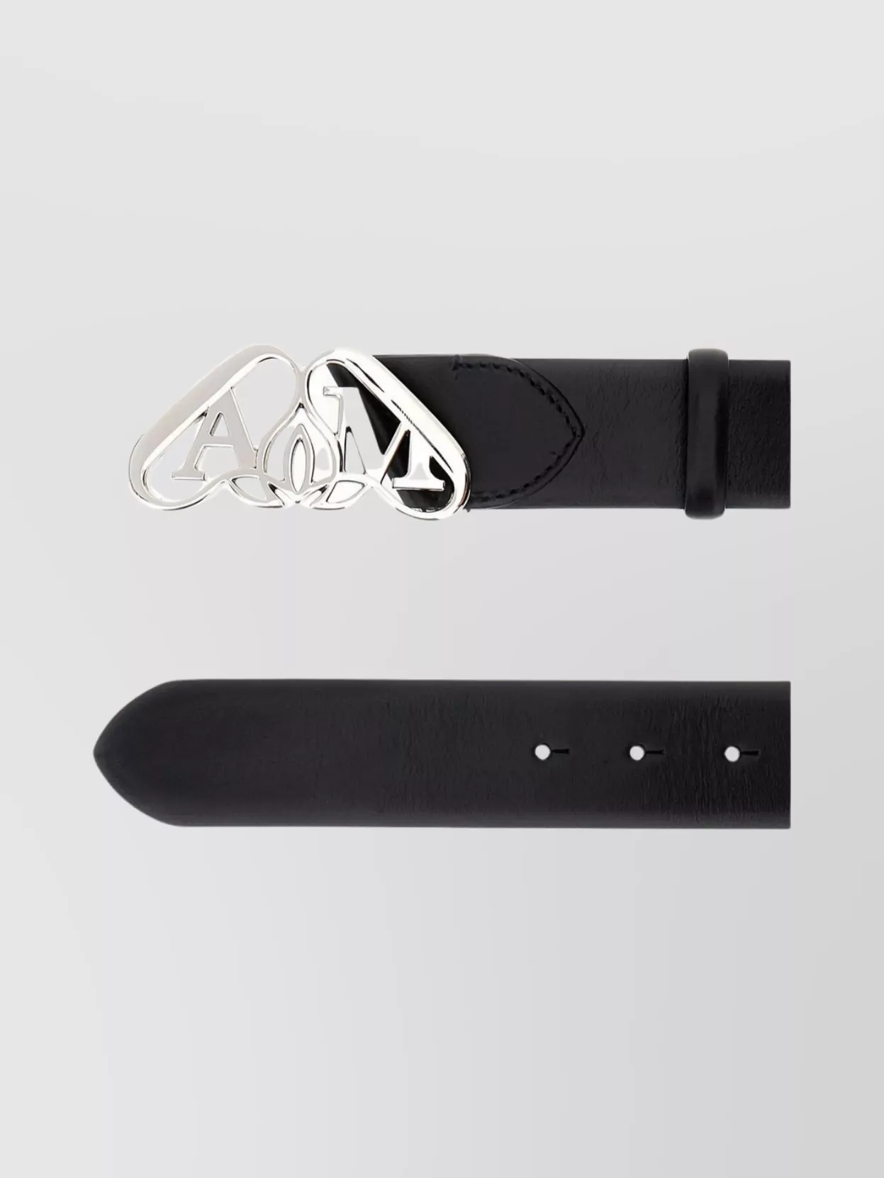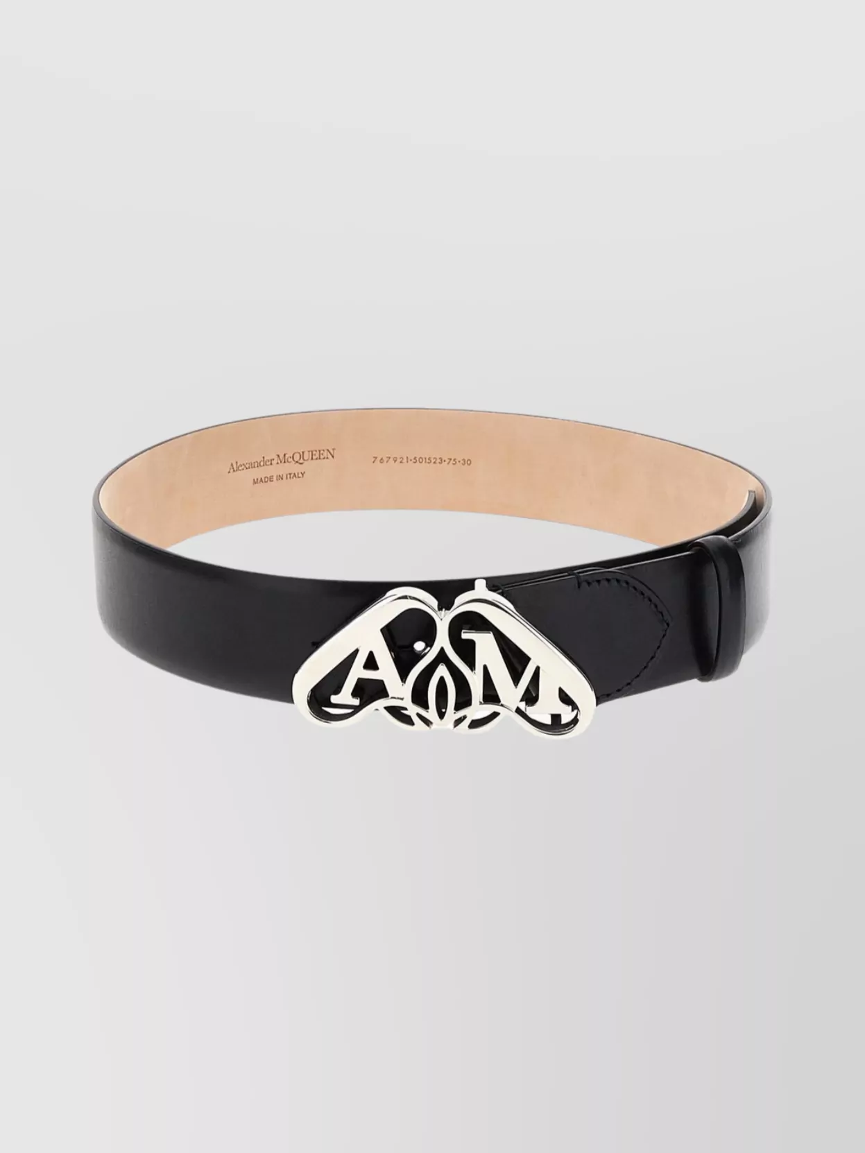 Alexander McQueen leather belt with gold-tone buckle and adjustable length