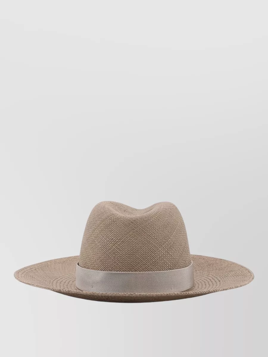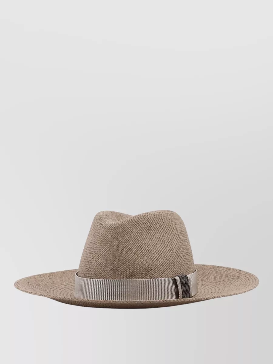 Brunello Cucinelli raffia fedora hat monili detail ribbon band