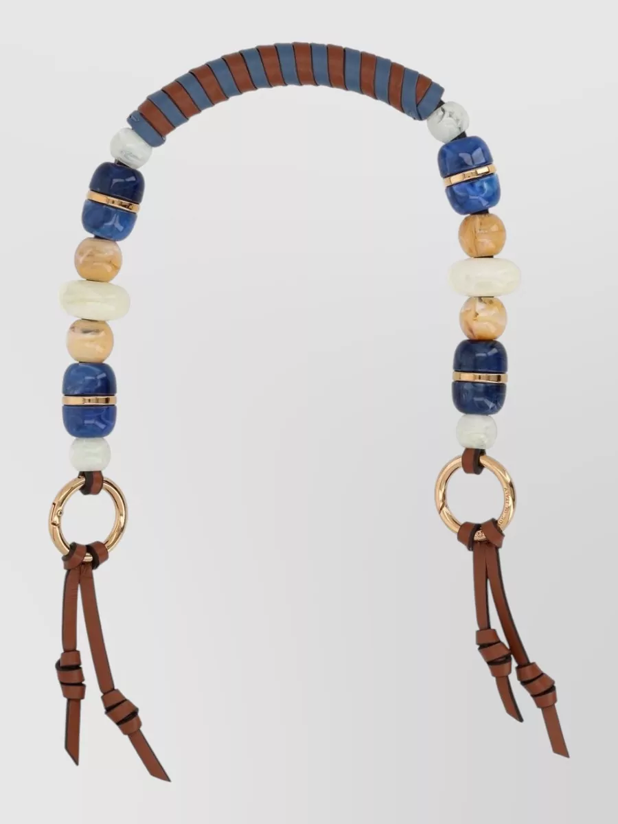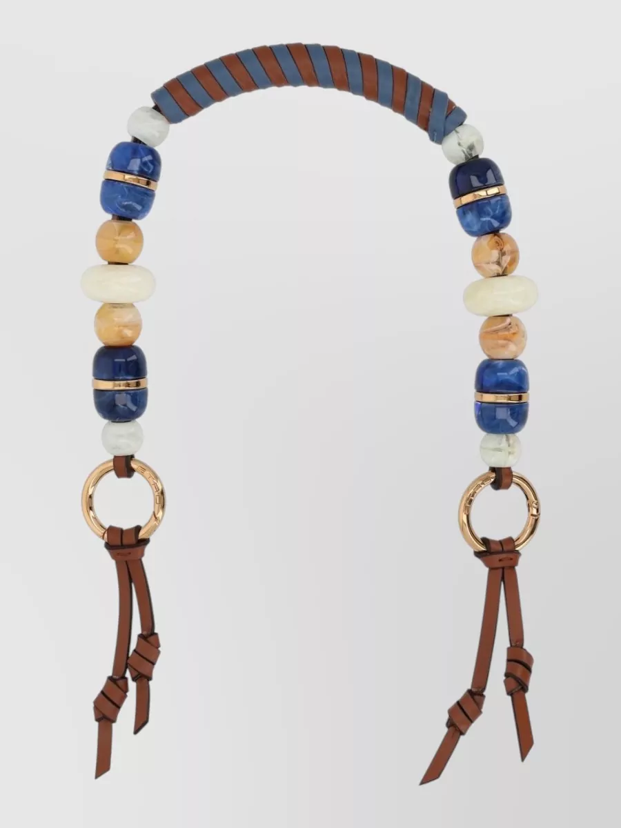 Etro beaded keyring gold tone rings leather straps