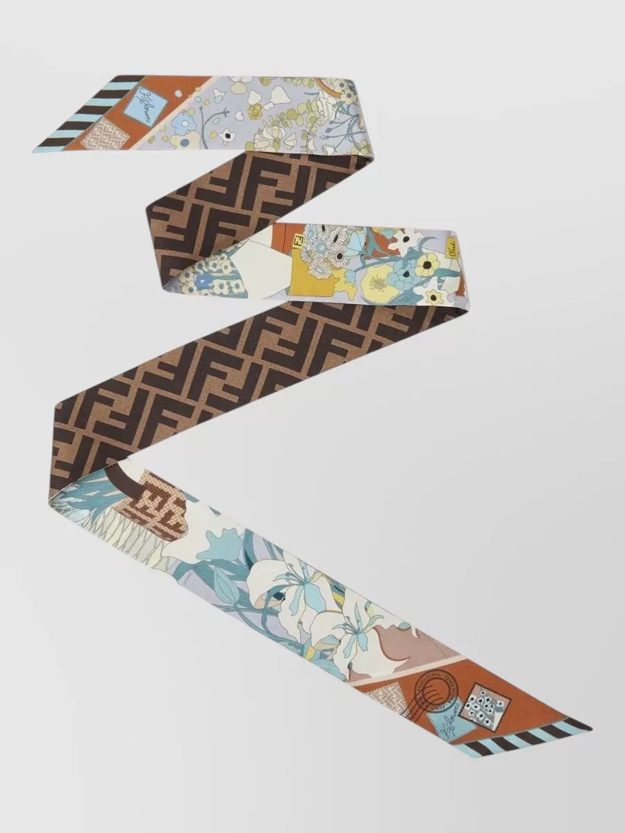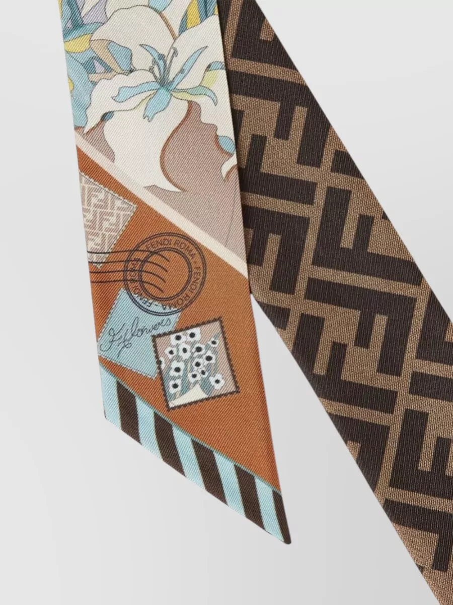 Fendi silk foulard floral accents geometric patterns