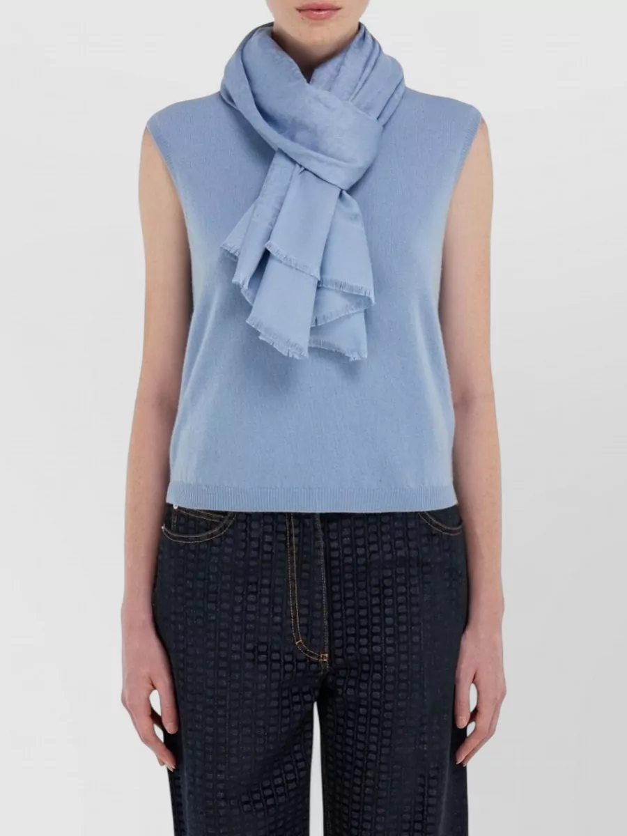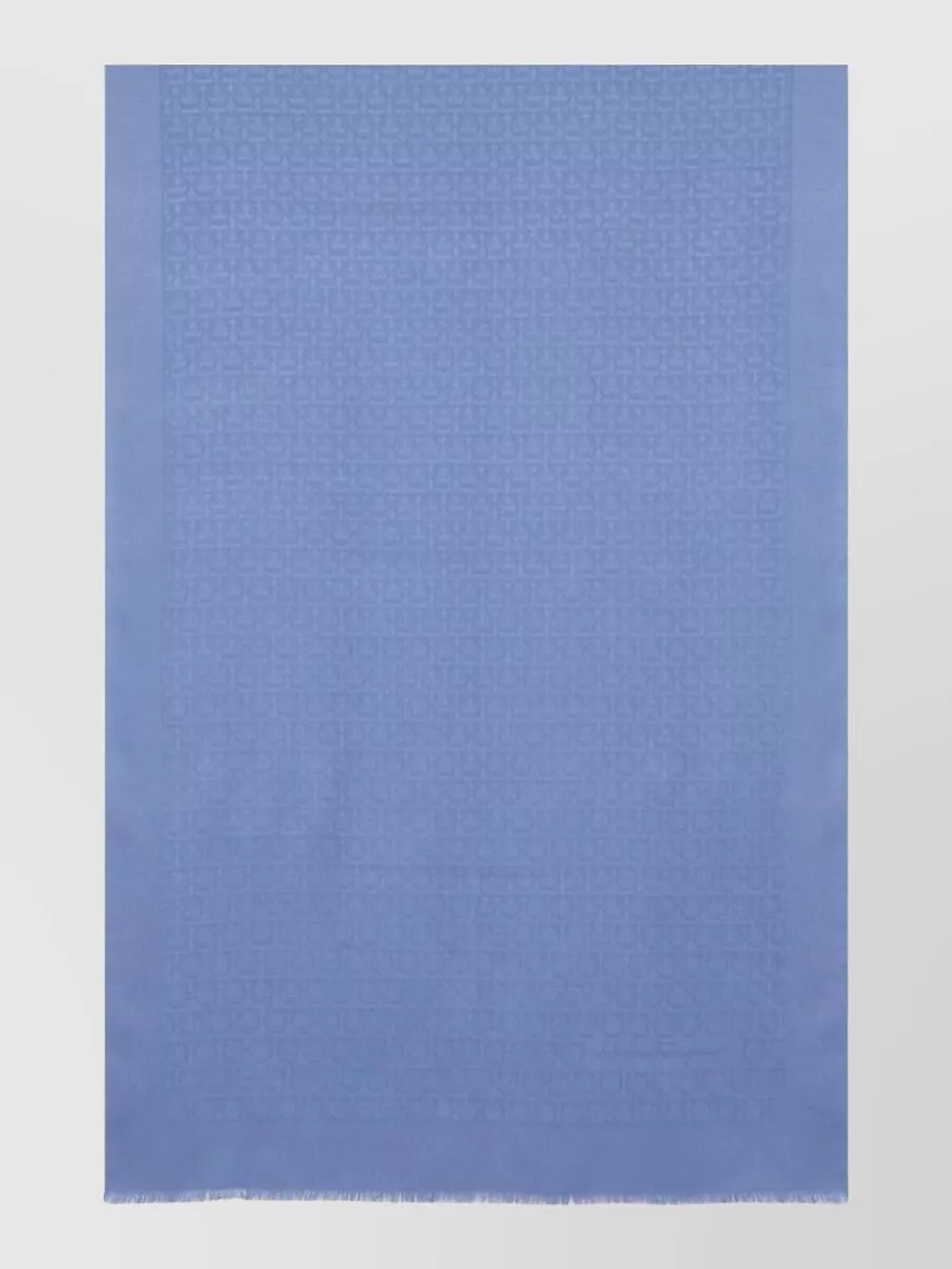Ferragamo wool blend reversible embroidered scarf with fringed edges