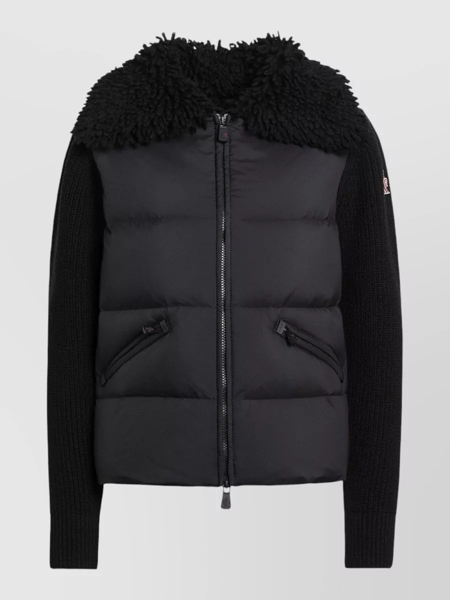Moncler Grenoble padded wool cardigan shearling collar