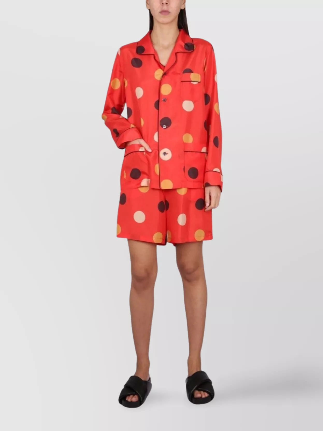 silk pants with polka dot pattern