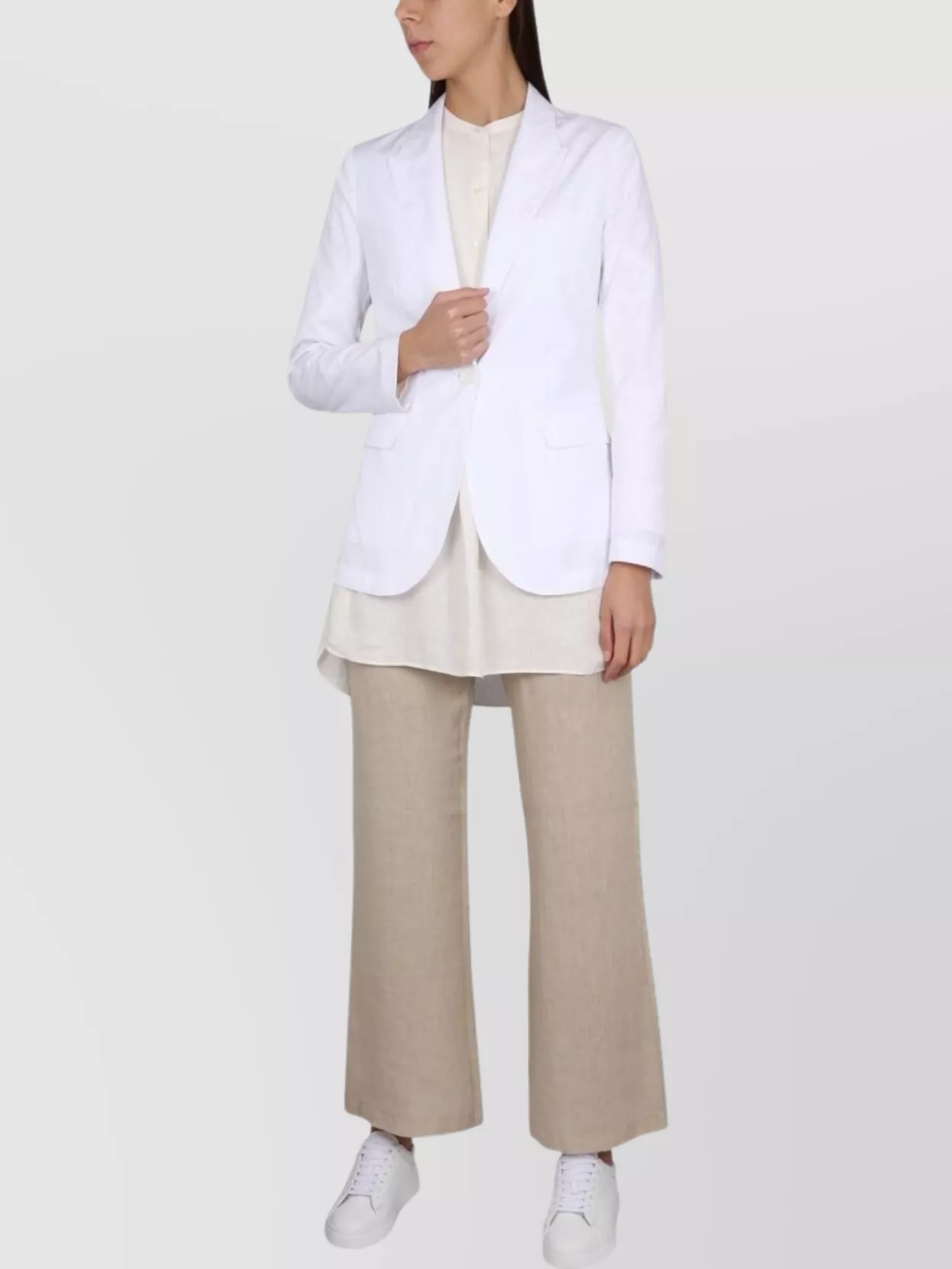 longline blazer with flap pockets and notched lapels