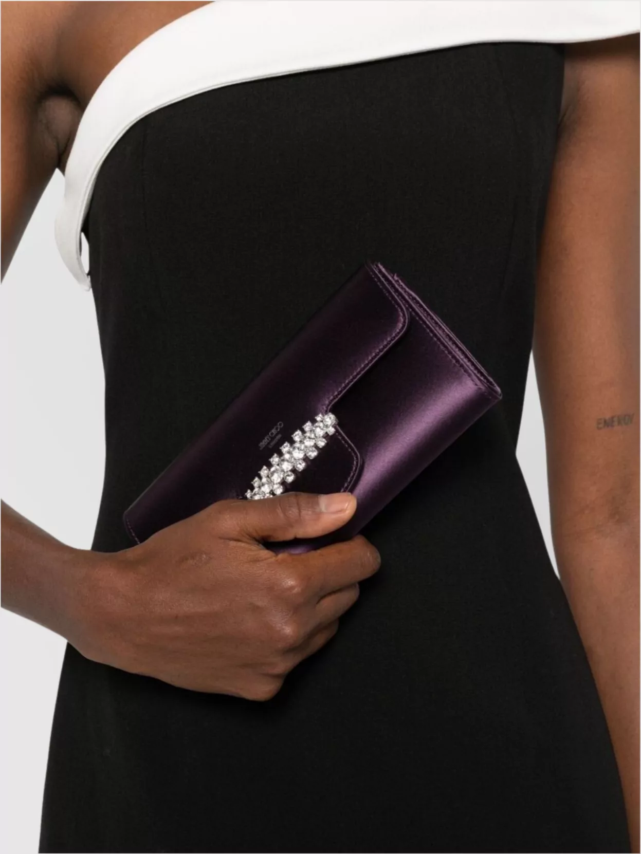 Jimmy Choo crinkled rectangular clutch embellished detail
