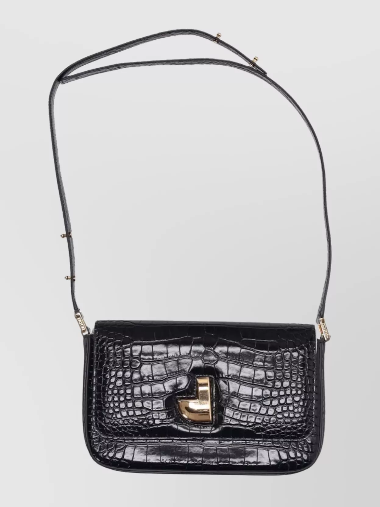 curved wallet with gold hardware and strap