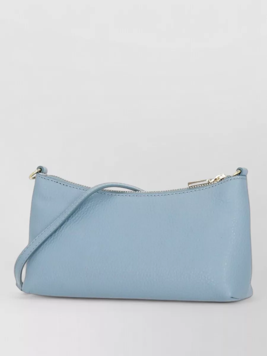 Pebbled leather shoulder bag gold tone chain