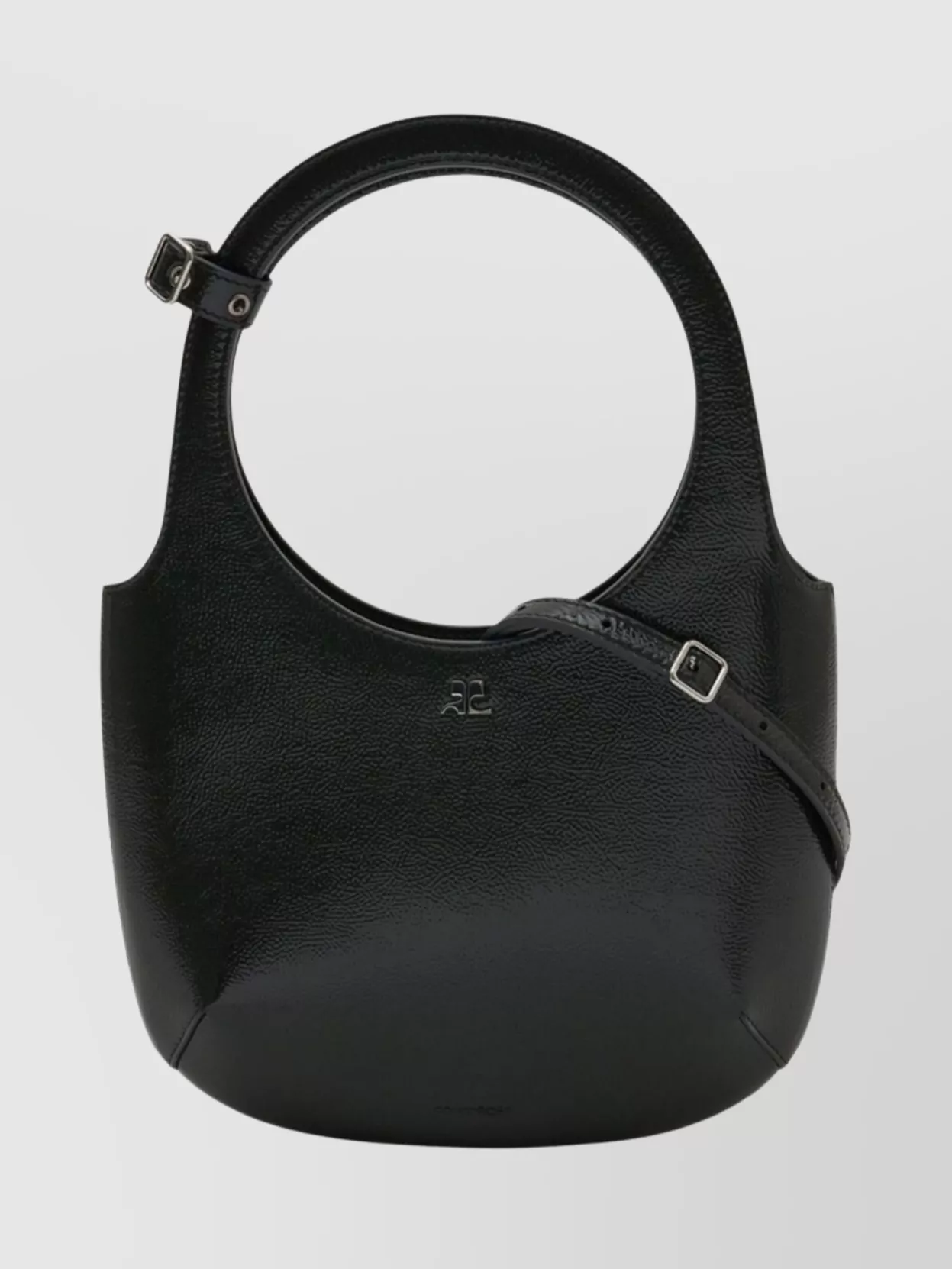Curved patent leather shoulder bag