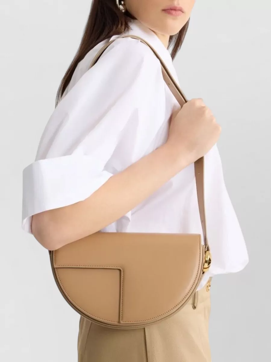 Patou curved shape leather bag with adjustable strap