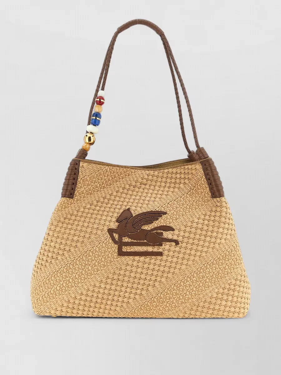 Etro shoulder bag woven texture dual handles beads