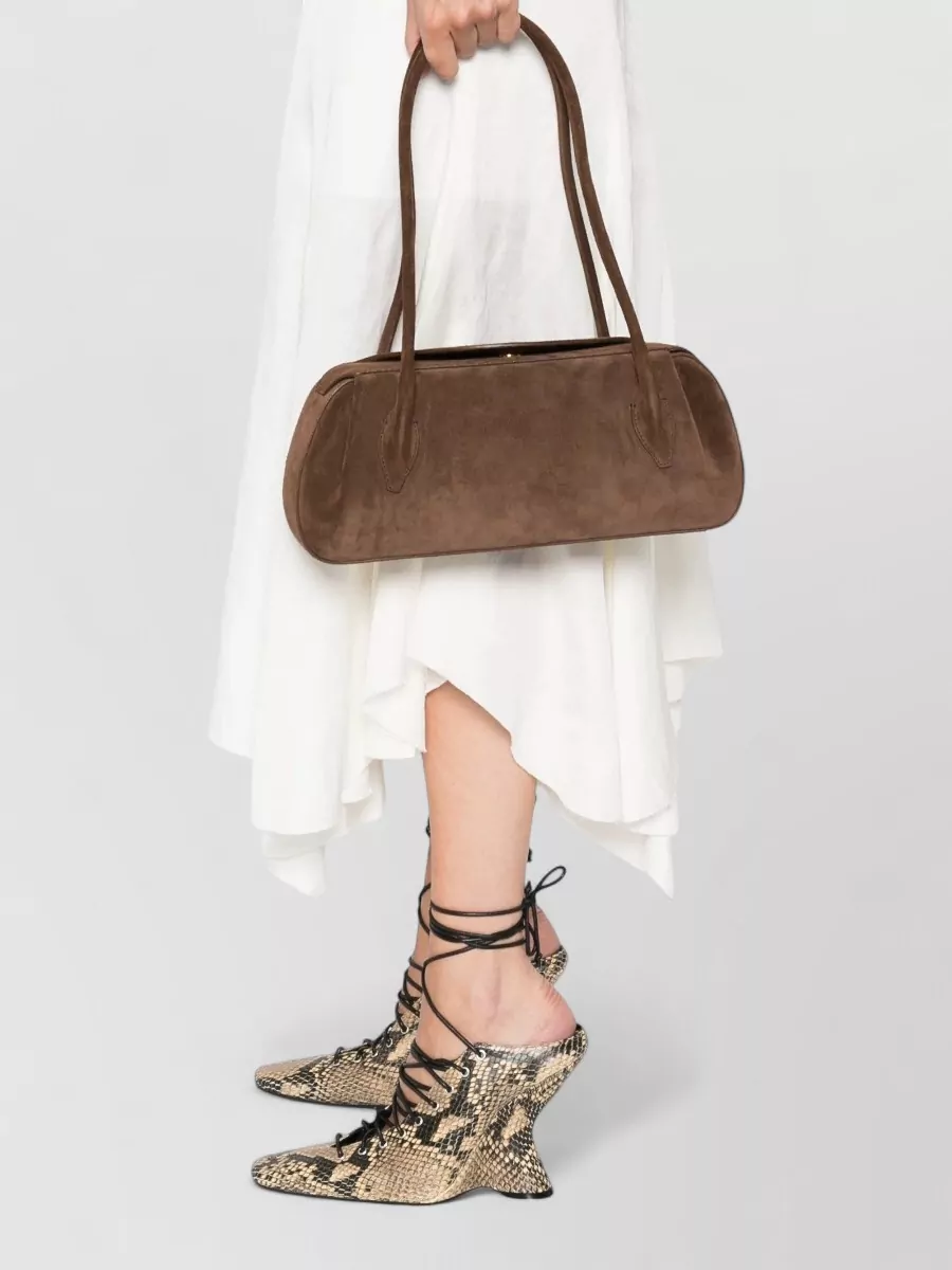 Yuzefi rectangular suede shoulder bag with detachable strap