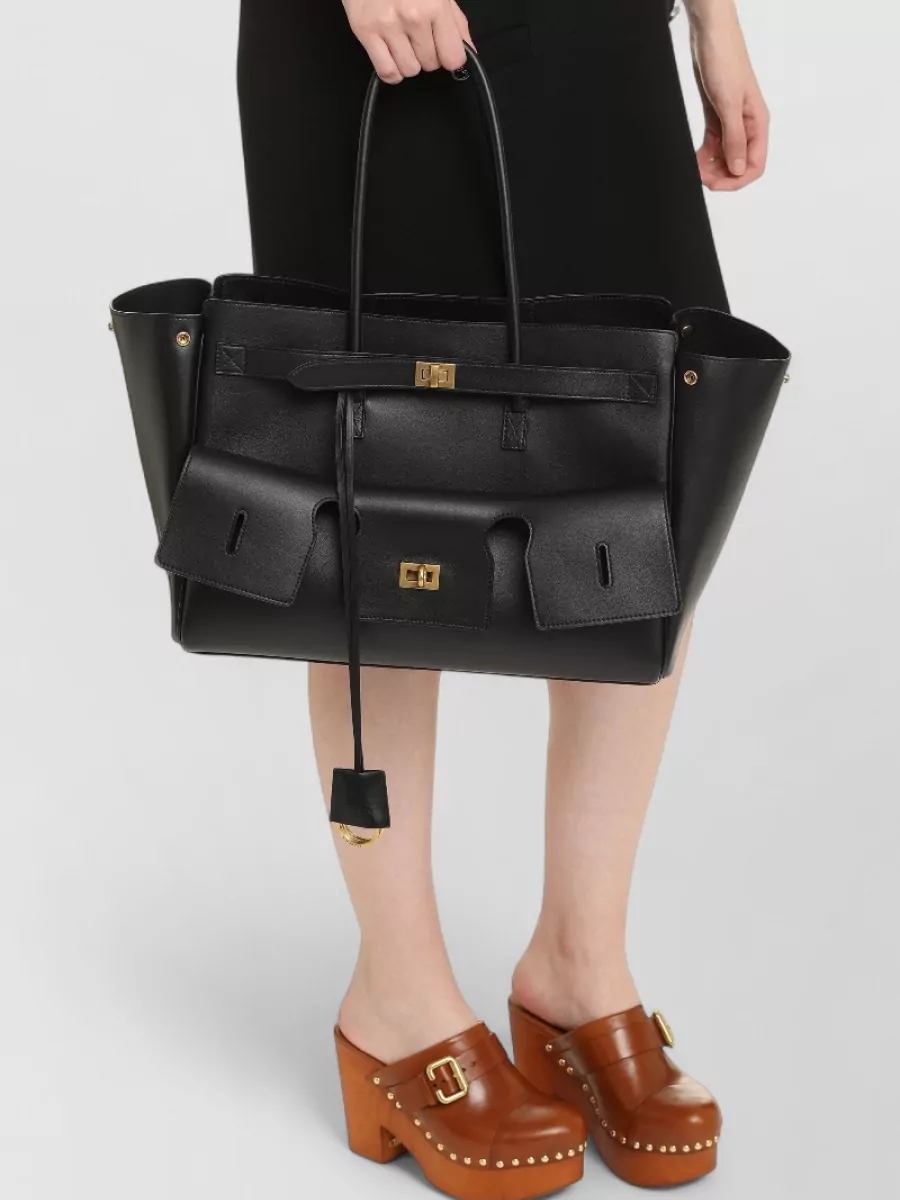 Balenciaga structured tote bag with buckle and gold-tone