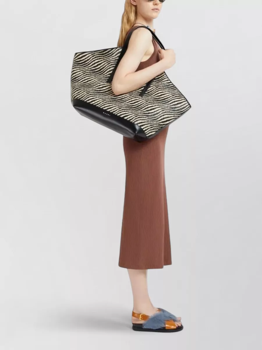 Marni zebra pattern tote bag dual handles leather