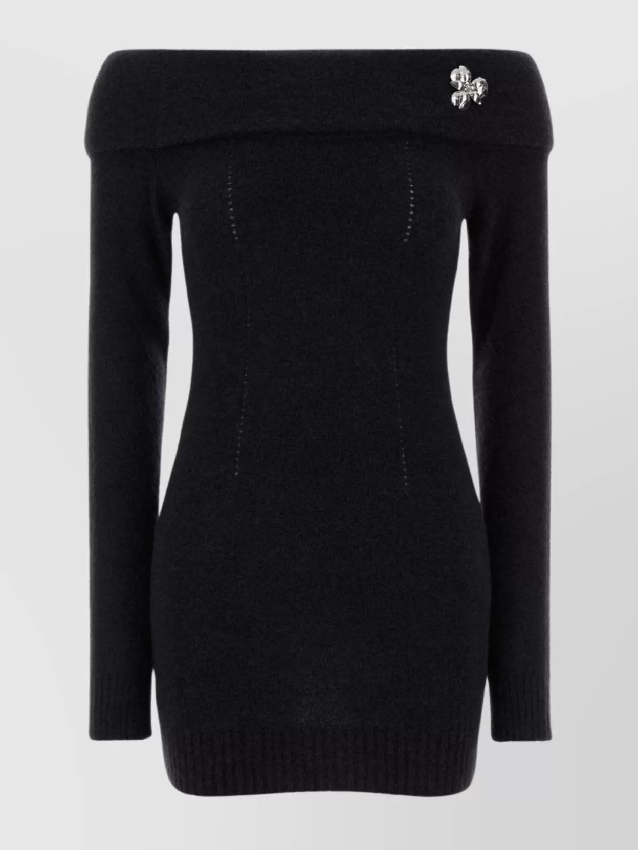 ribbed wool dress floral embellishment