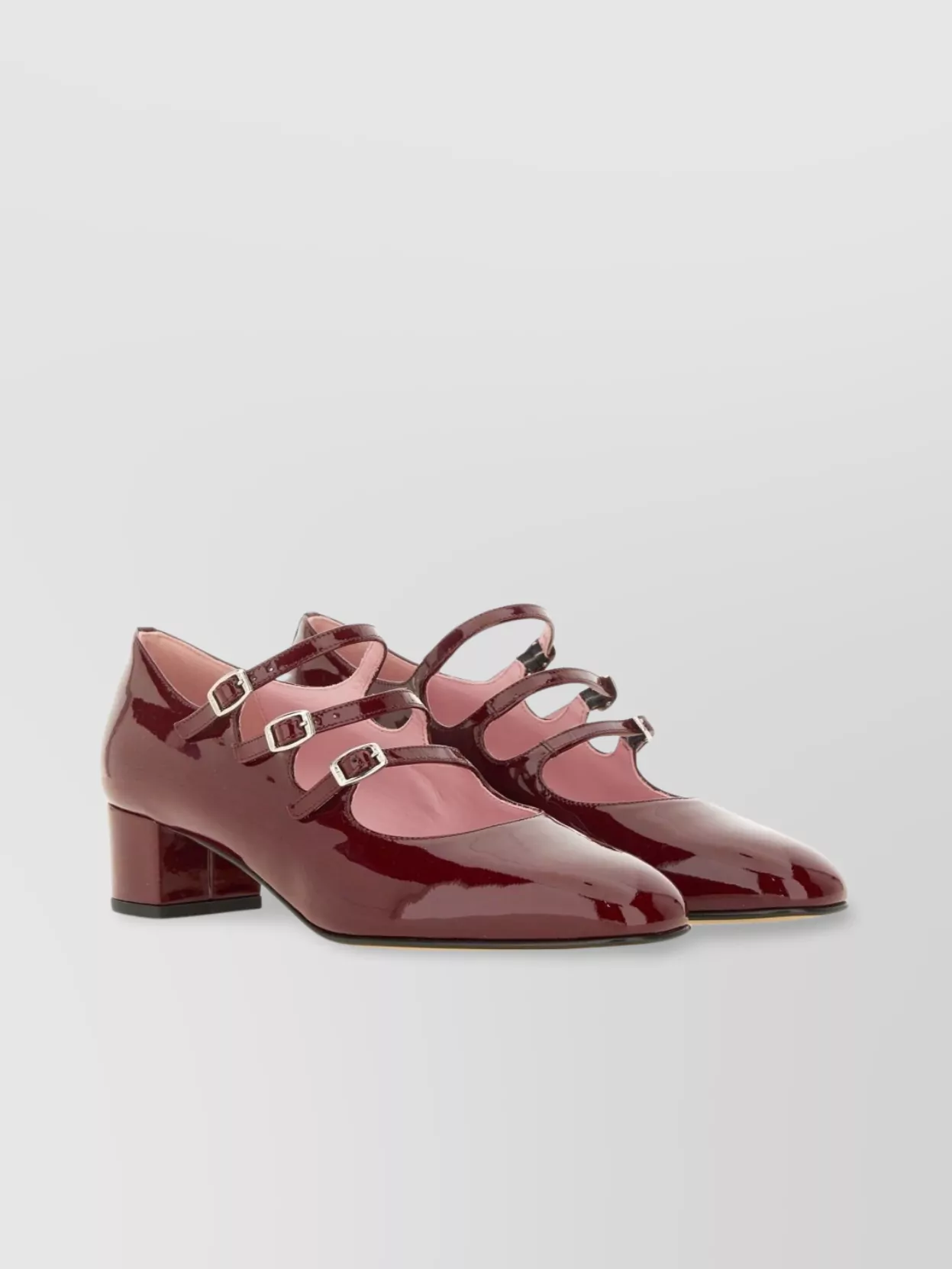 Carel Paris block heel buckle straps patent pumps