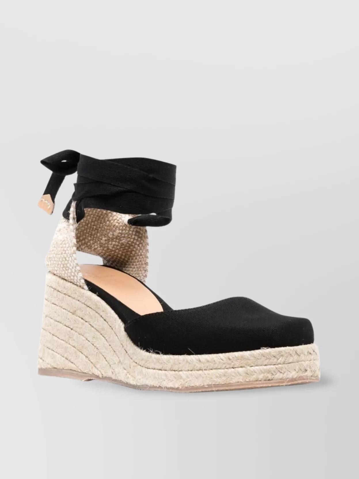 Castaner "clear" ankle wrap espadrille sole peep toe woven texture