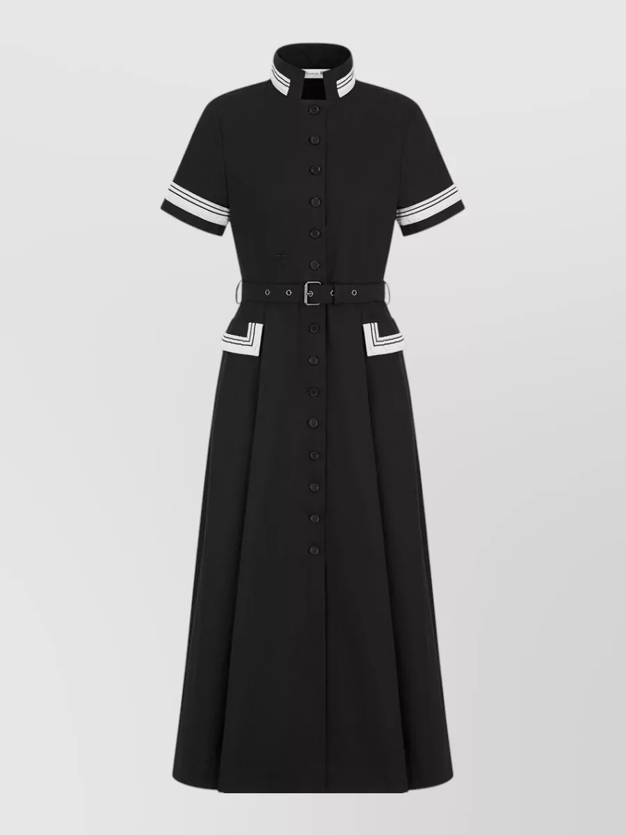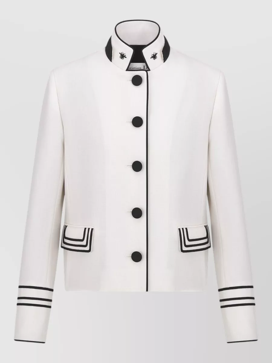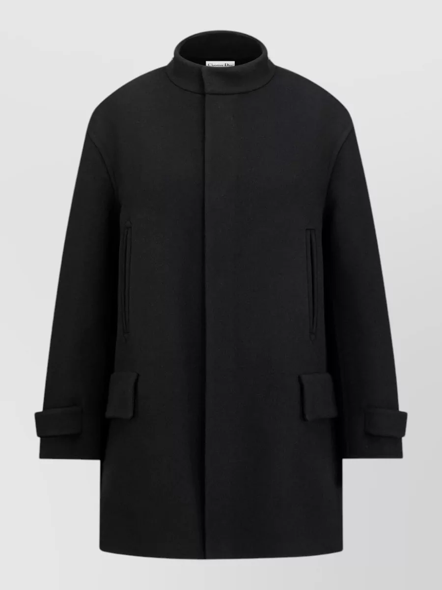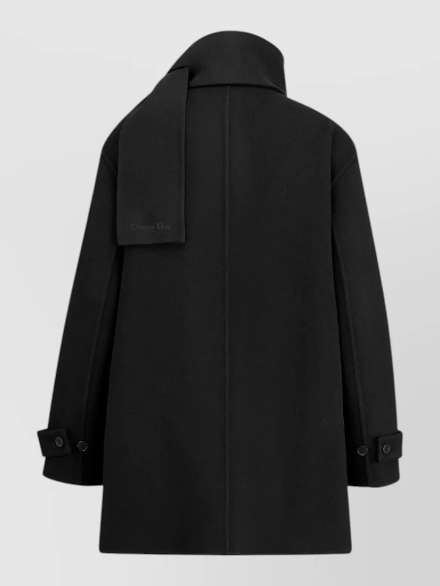 Christian Dior high collar coat buttoned cuffs scarf detail