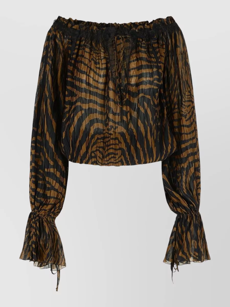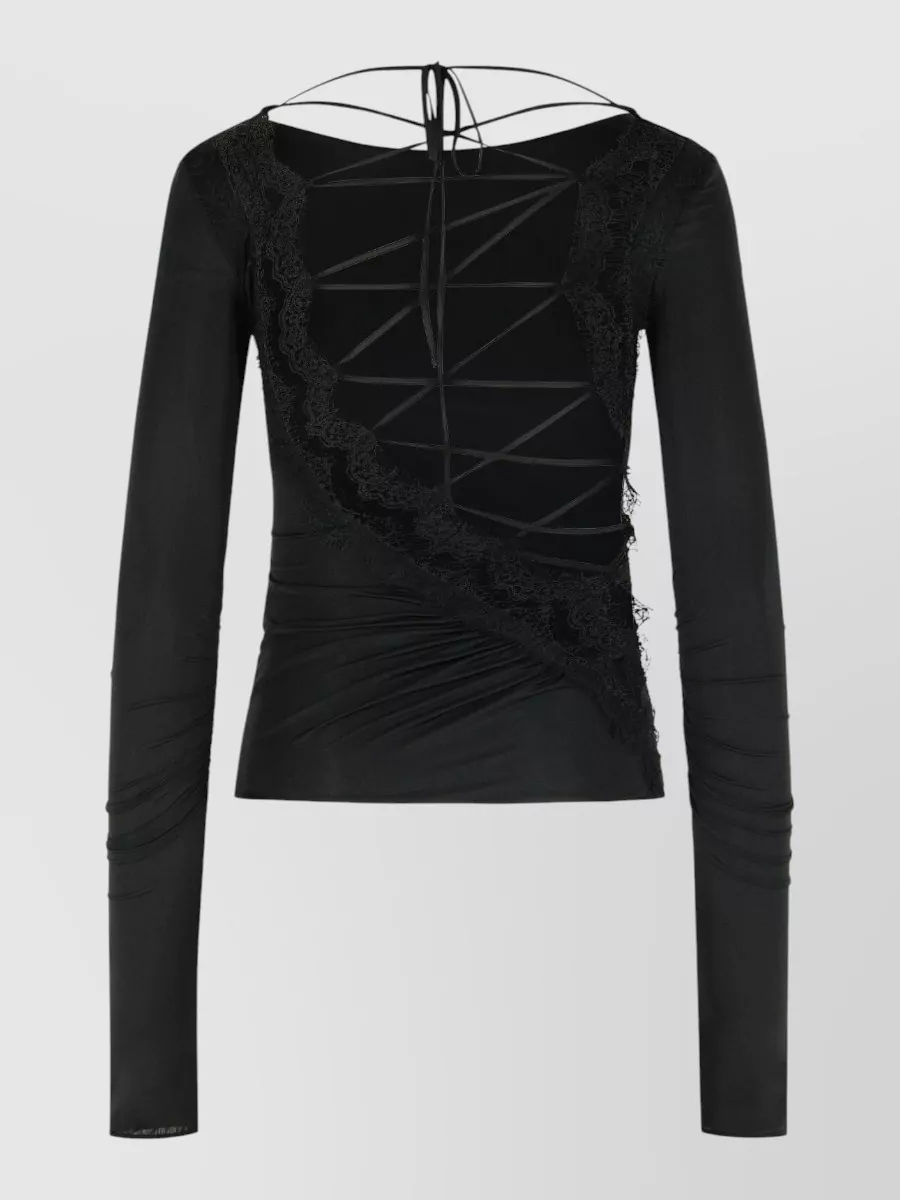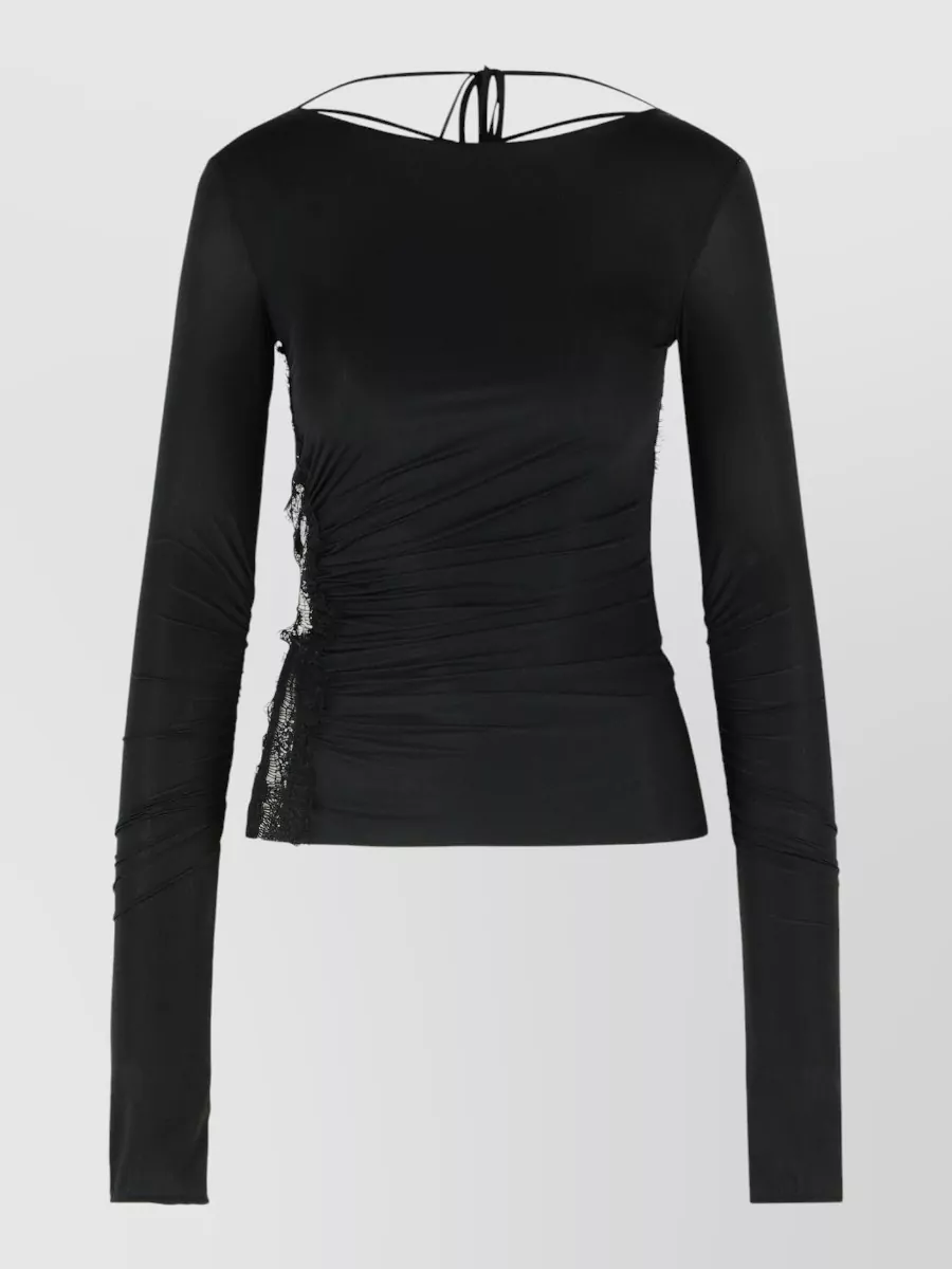 Blumarine sleeved knitwear with roll neck and ruffled detailing