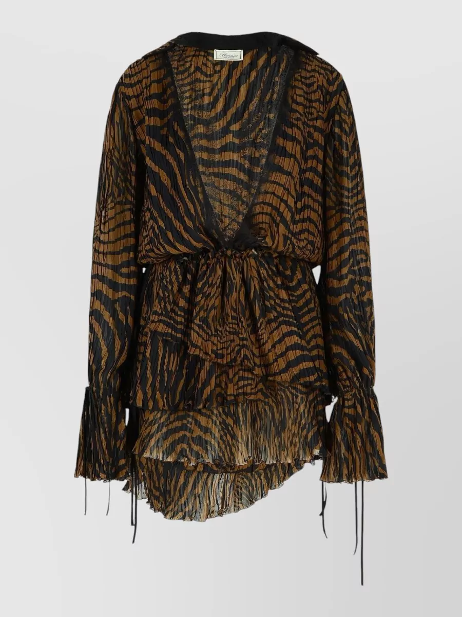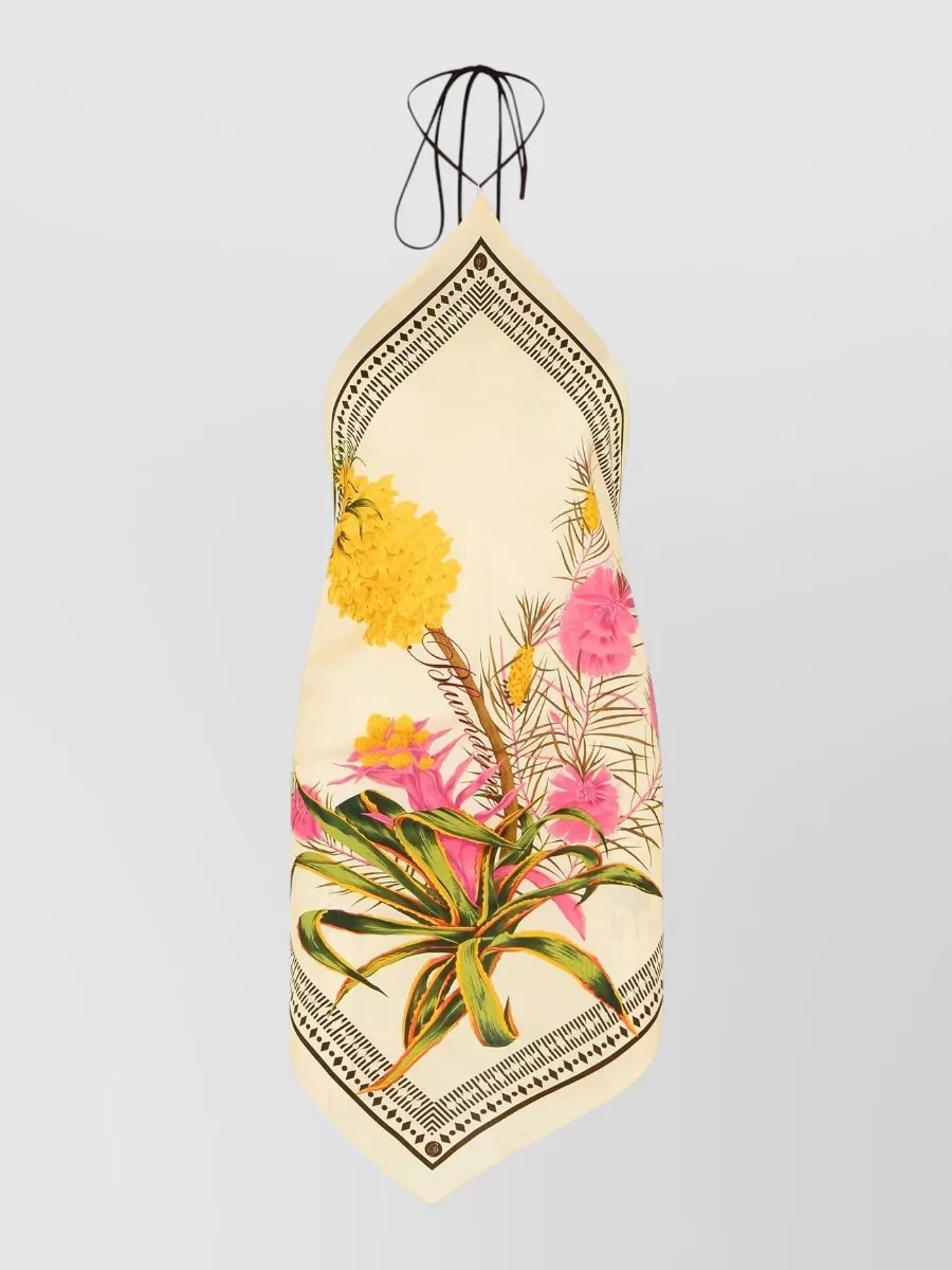 Blumarine jersey dress with asymmetric ruffle and floral embellishment