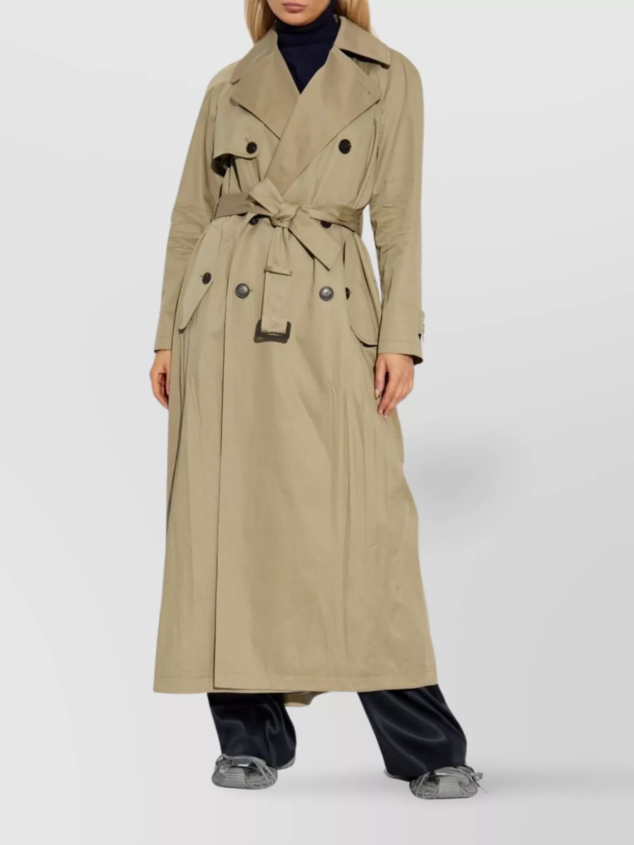 double-breasted trench coat belted waist
