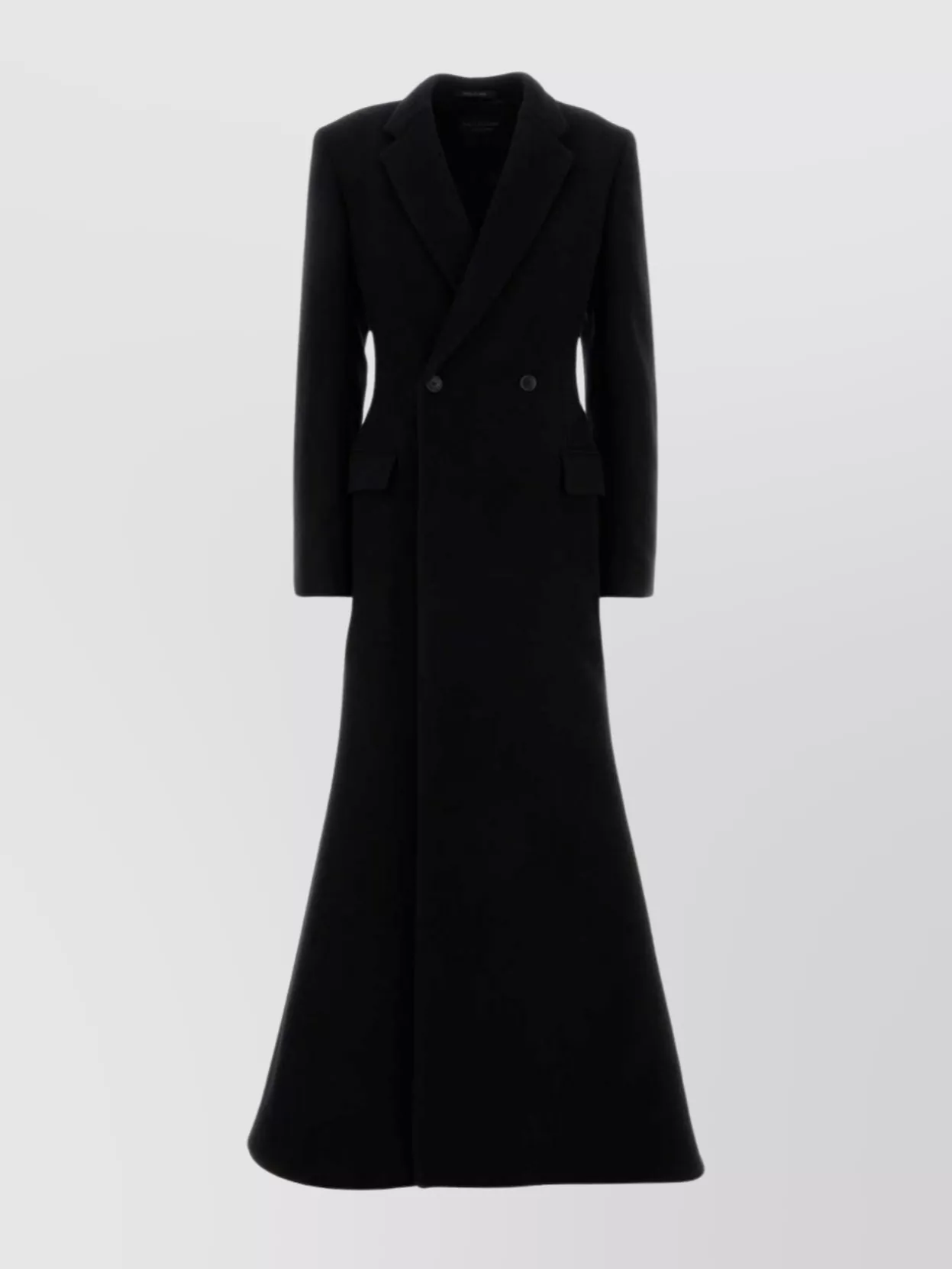 Balenciaga double-breasted long wool blend coat with flared hem