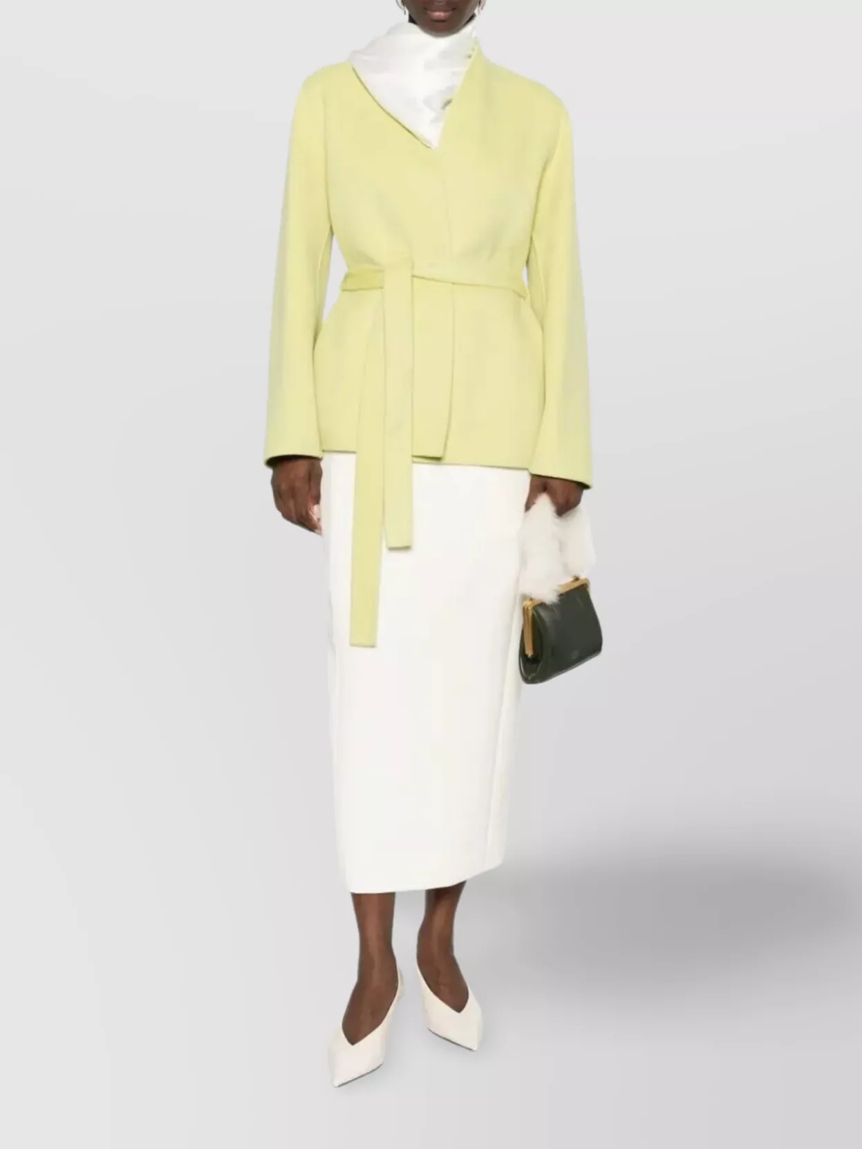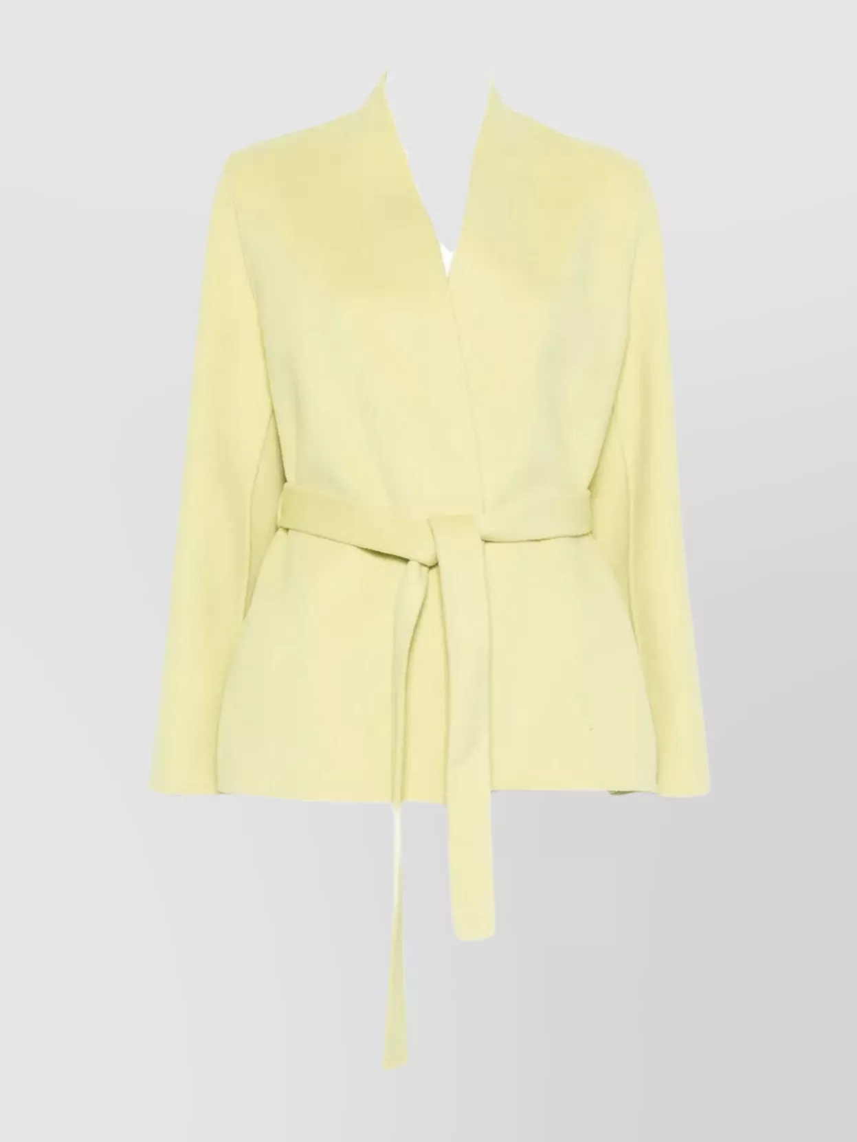 belted coat with notched lapels and pockets