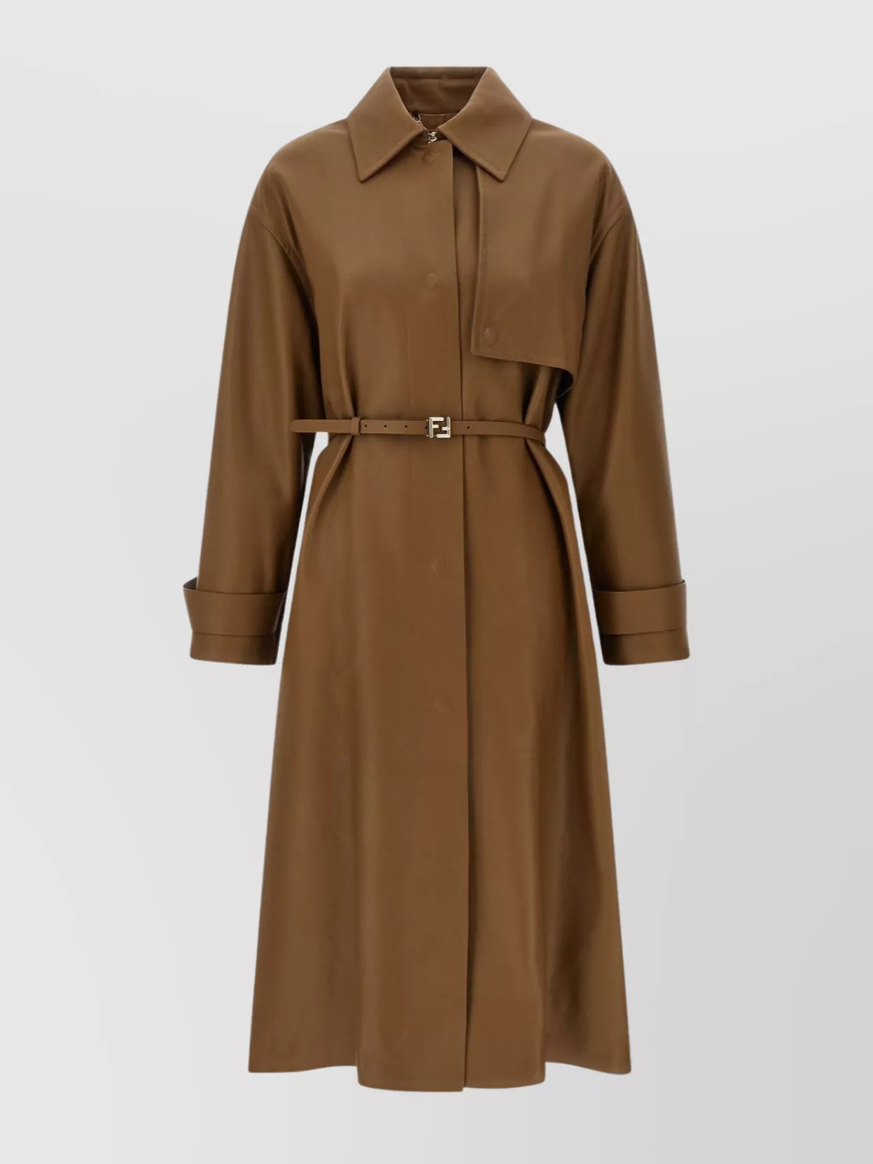 Fendi long belted trench coat with pointed collar