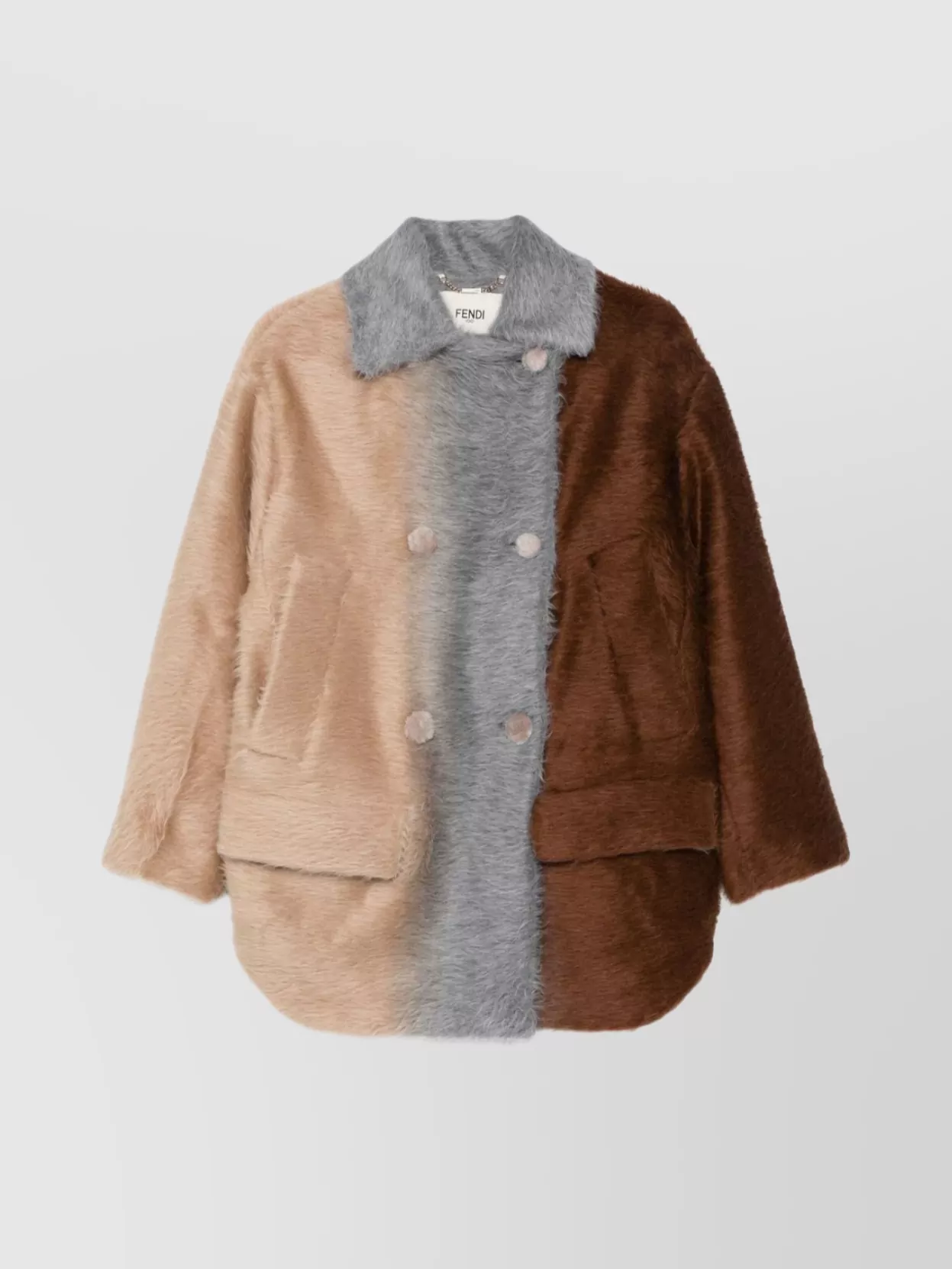 Fendi wool blend coat featuring fur pockets