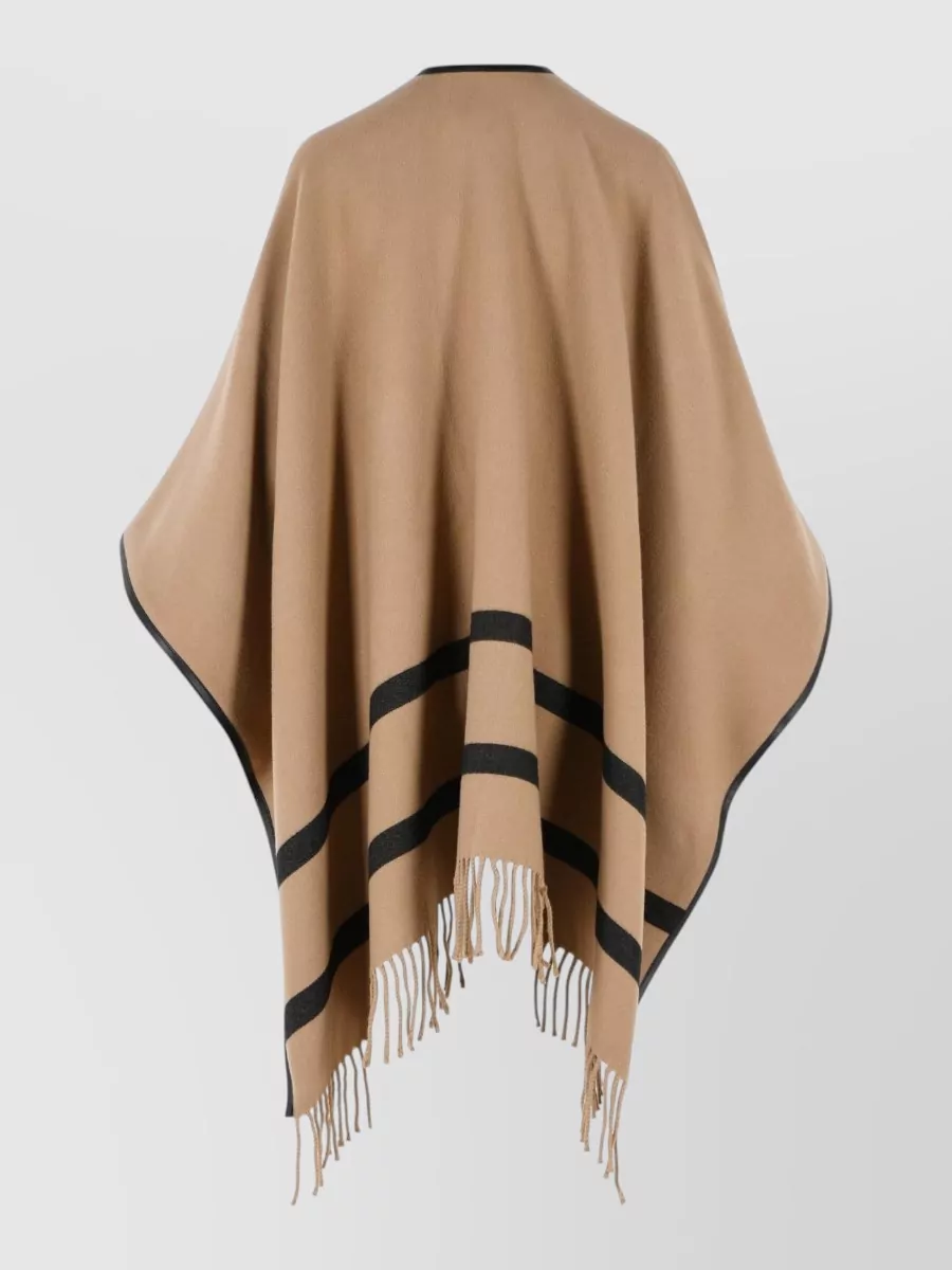 camel wrap belted fringe cape