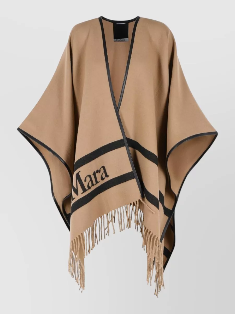 Max Mara camel wrap belted fringe cape
