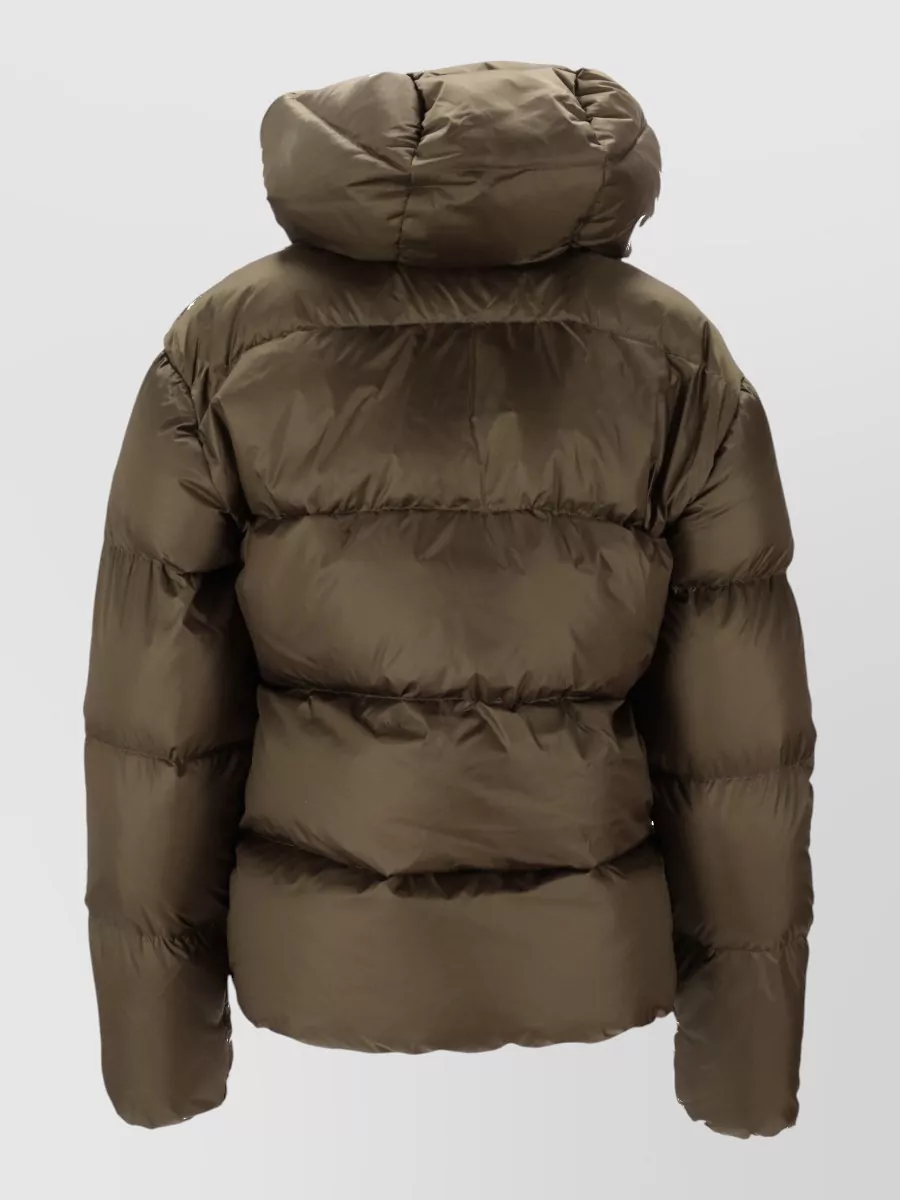hooded quilted coat ribbed cuffs pockets