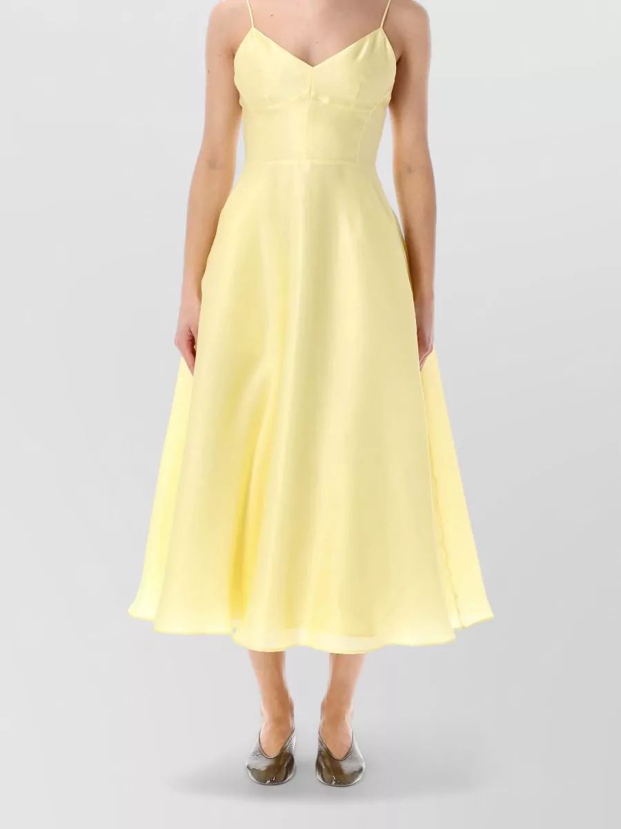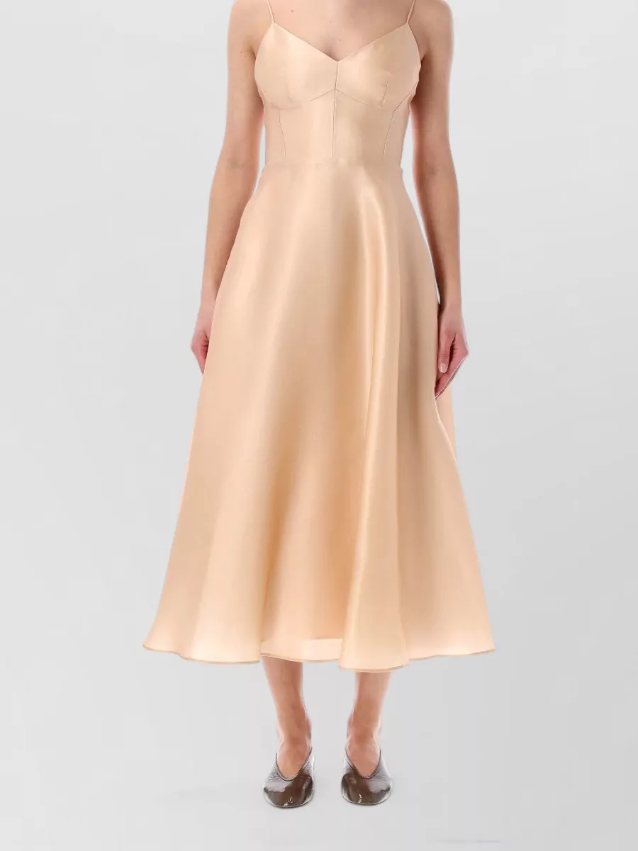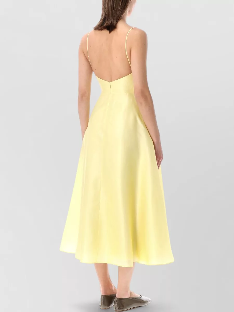silk v-neck sleeveless flared midi dress