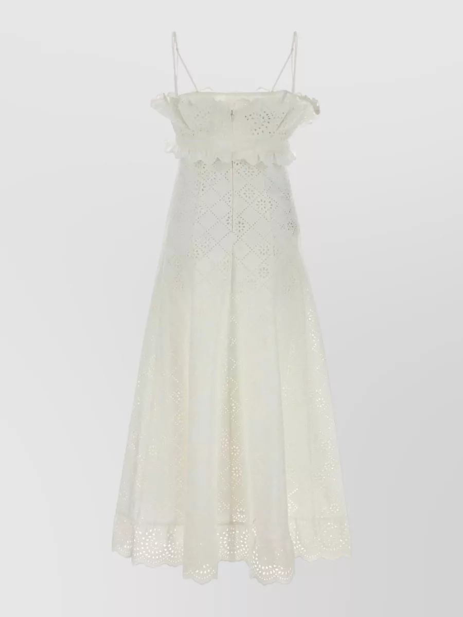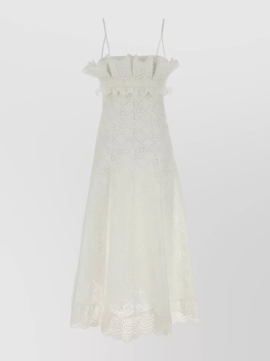 broderie anglaise midi dress ruffle straps
