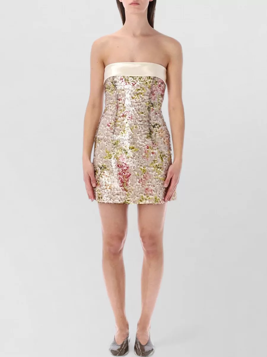 Alberta Ferretti strapless sequin dress floral motif satin