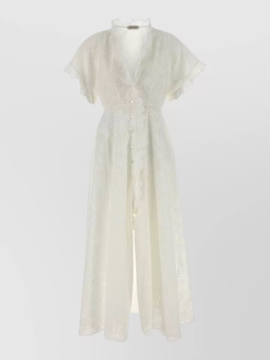 broderie anglaise dress v neckline ruffles