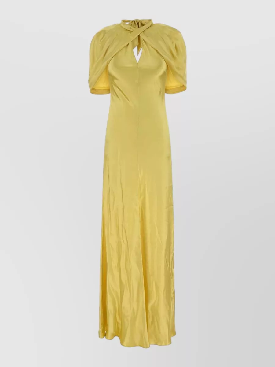 Alberta Ferretti satin long dress keyhole neckline cape