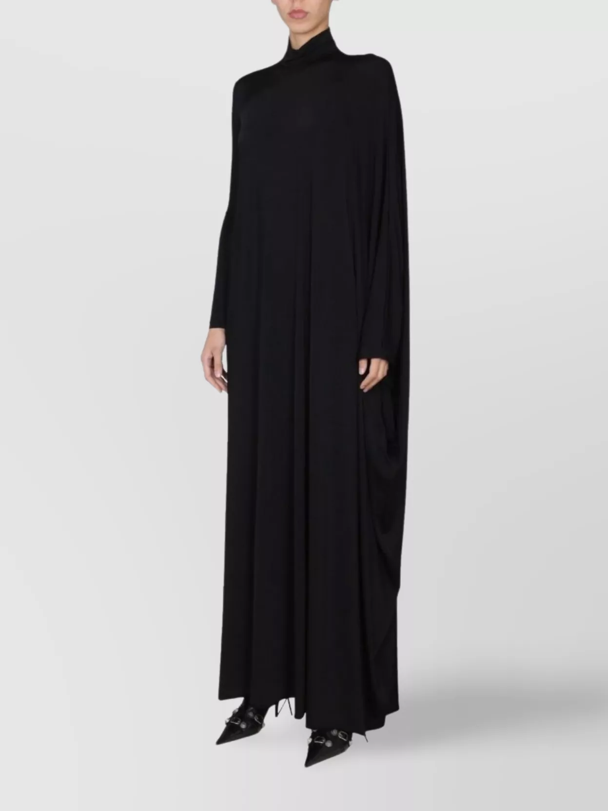 Balenciaga high neckline long sleeve fitted bodice flared skirt
