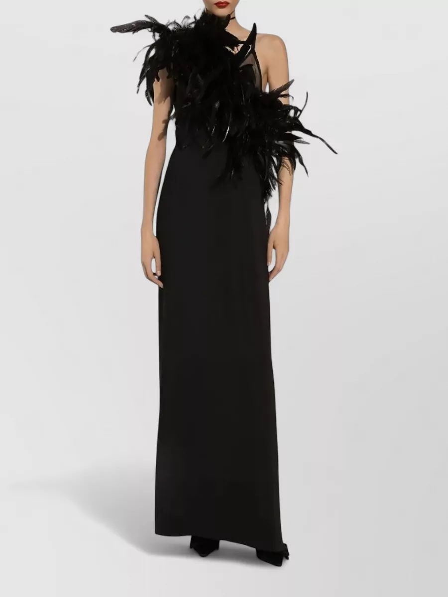 Dolce&Gabbana floor length one shoulder feather dress