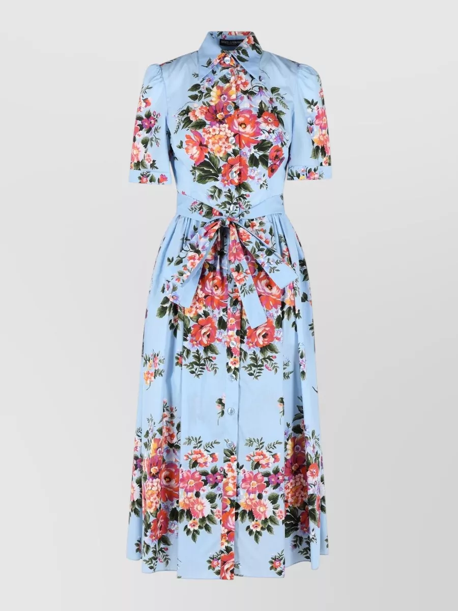 Dolce&Gabbana floral dress with waist tie and short sleeves