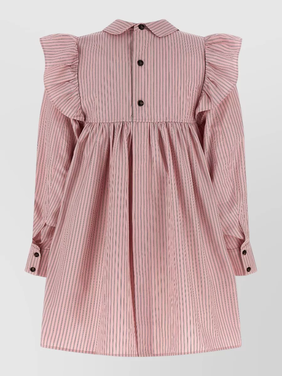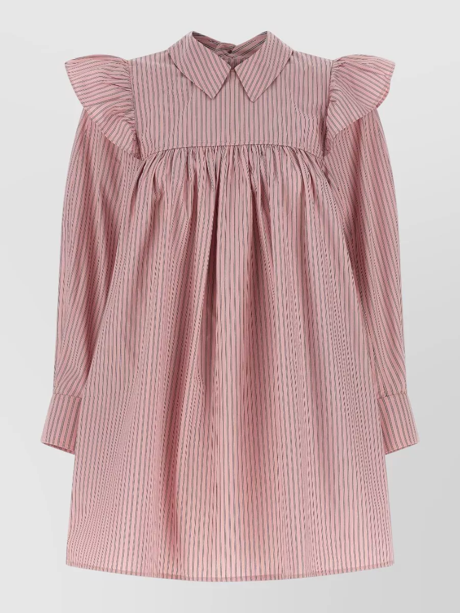 Ganni striped dress buttoned cuffs ruffled shoulders