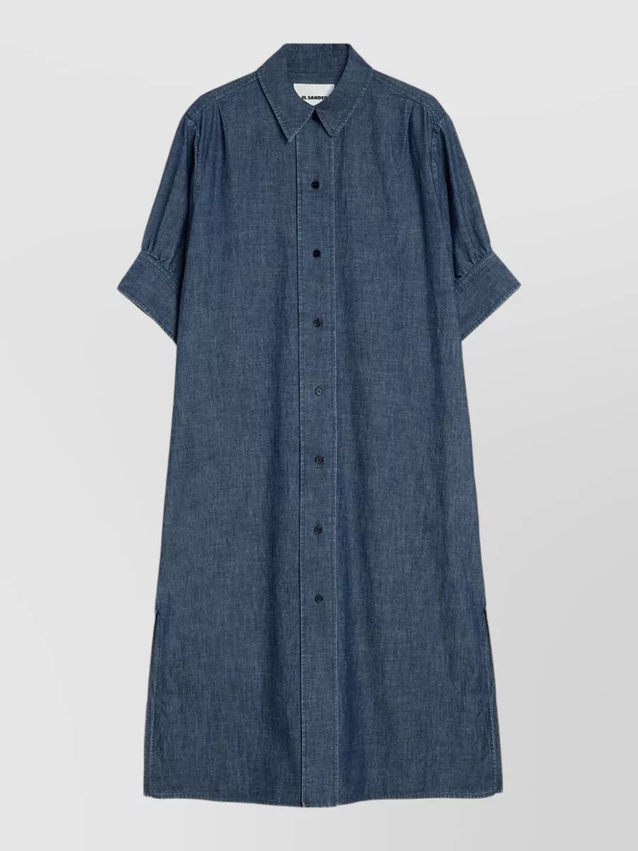 Jil Sander sheer fabric knee length dress with cuffed sleeves