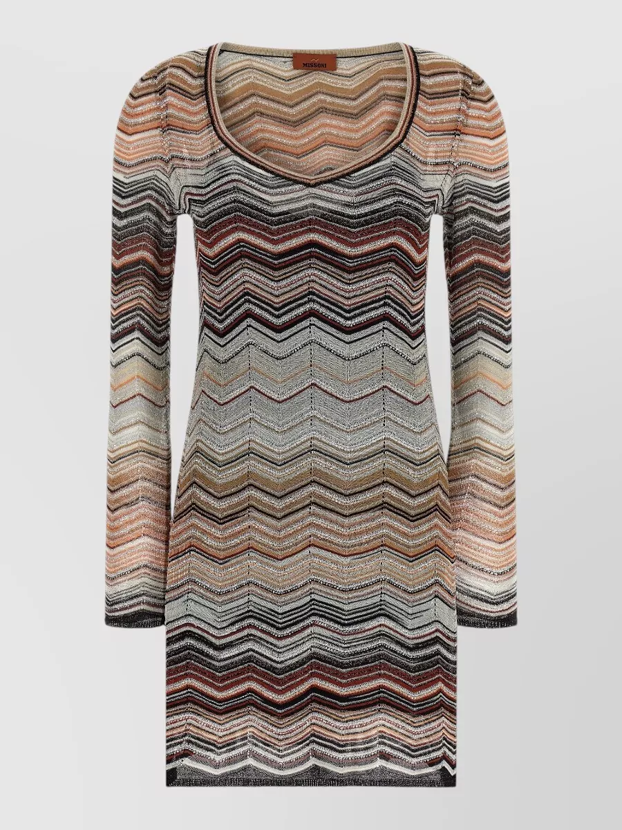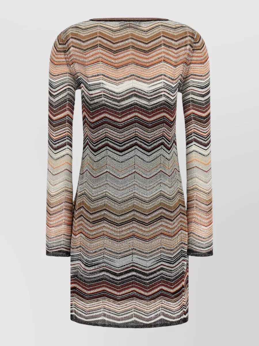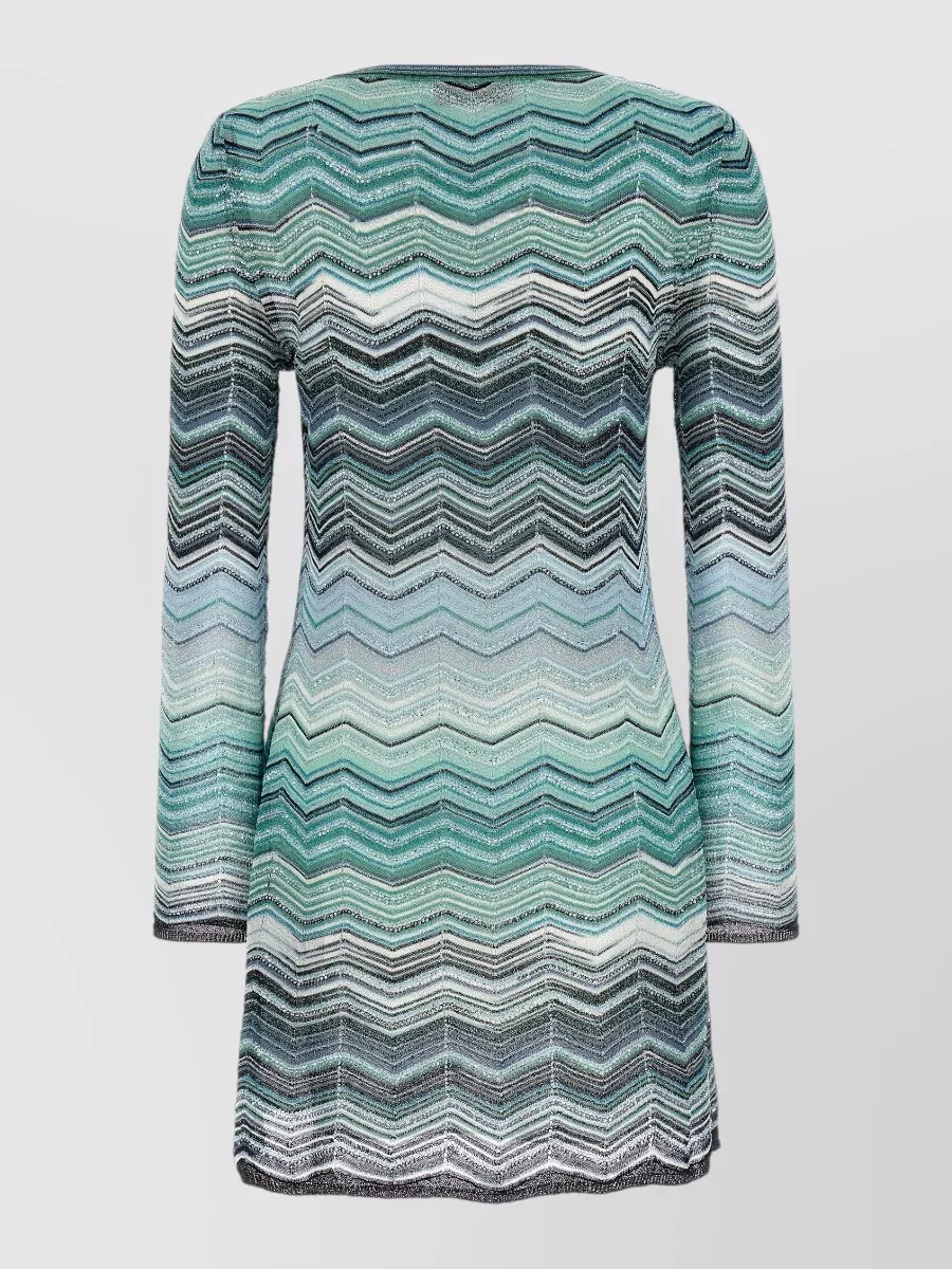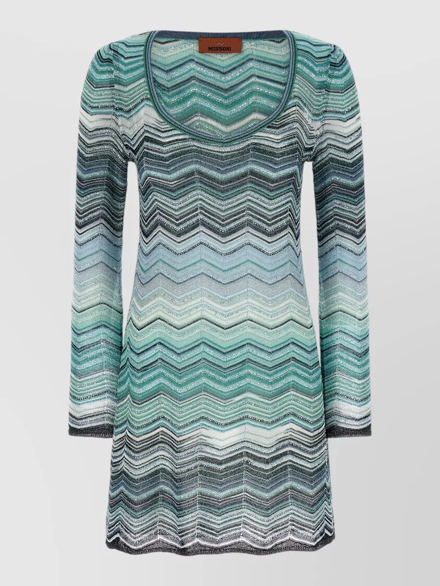 Missoni chevron knit dress long sleeves scoop neckline
