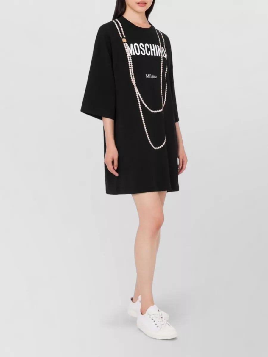 Moschino crew neck long sleeve graphic dress