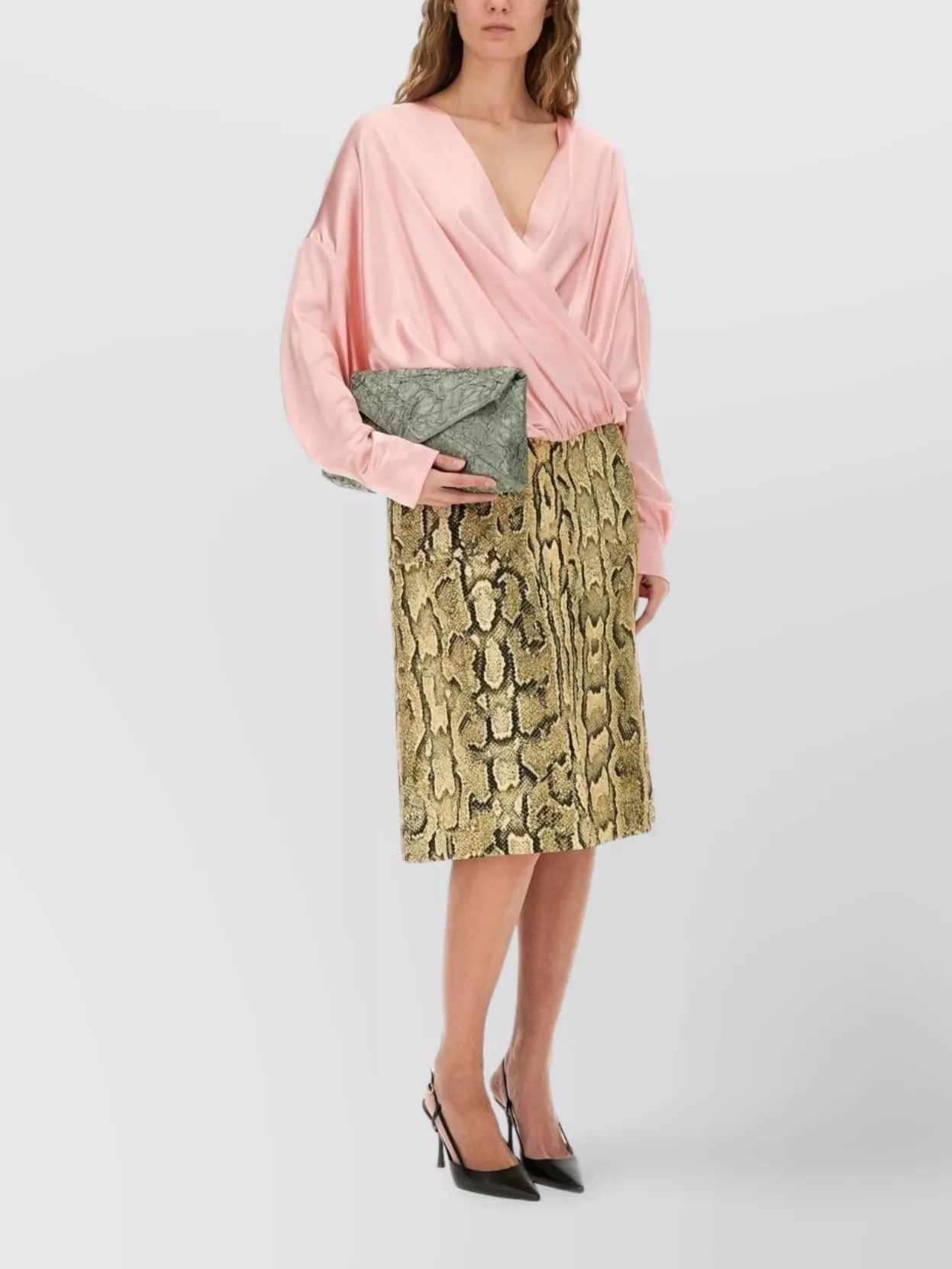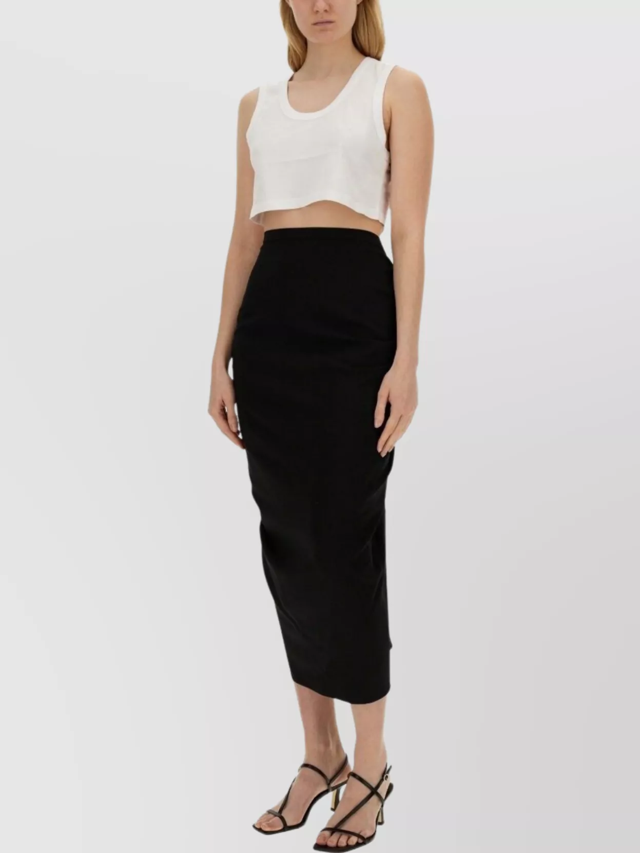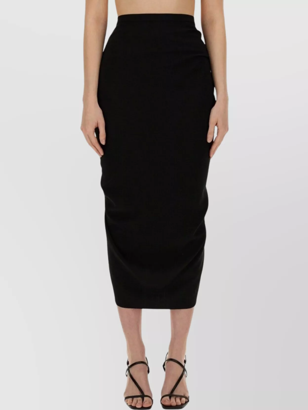high-waisted midi skirt ruching detail