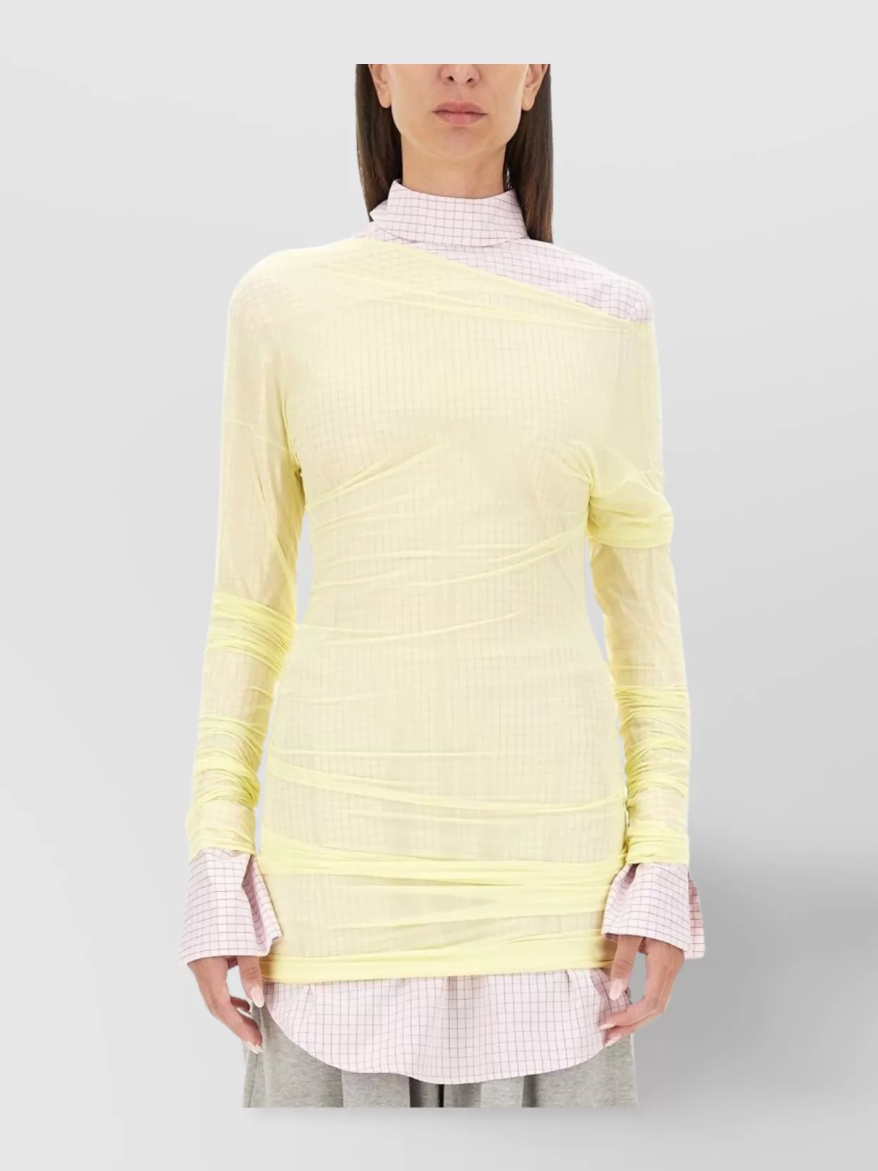 checked popeline turtleneck shirt with high collar