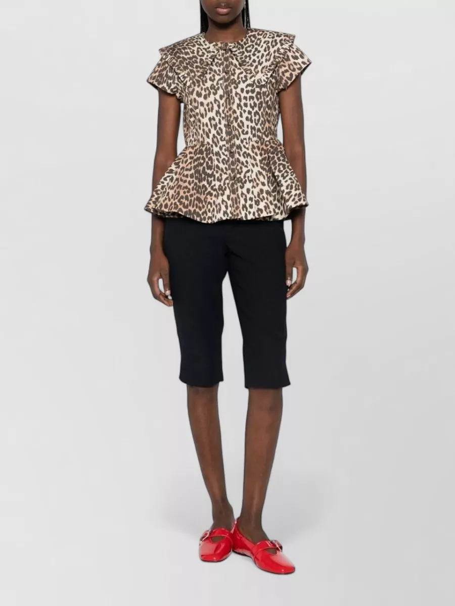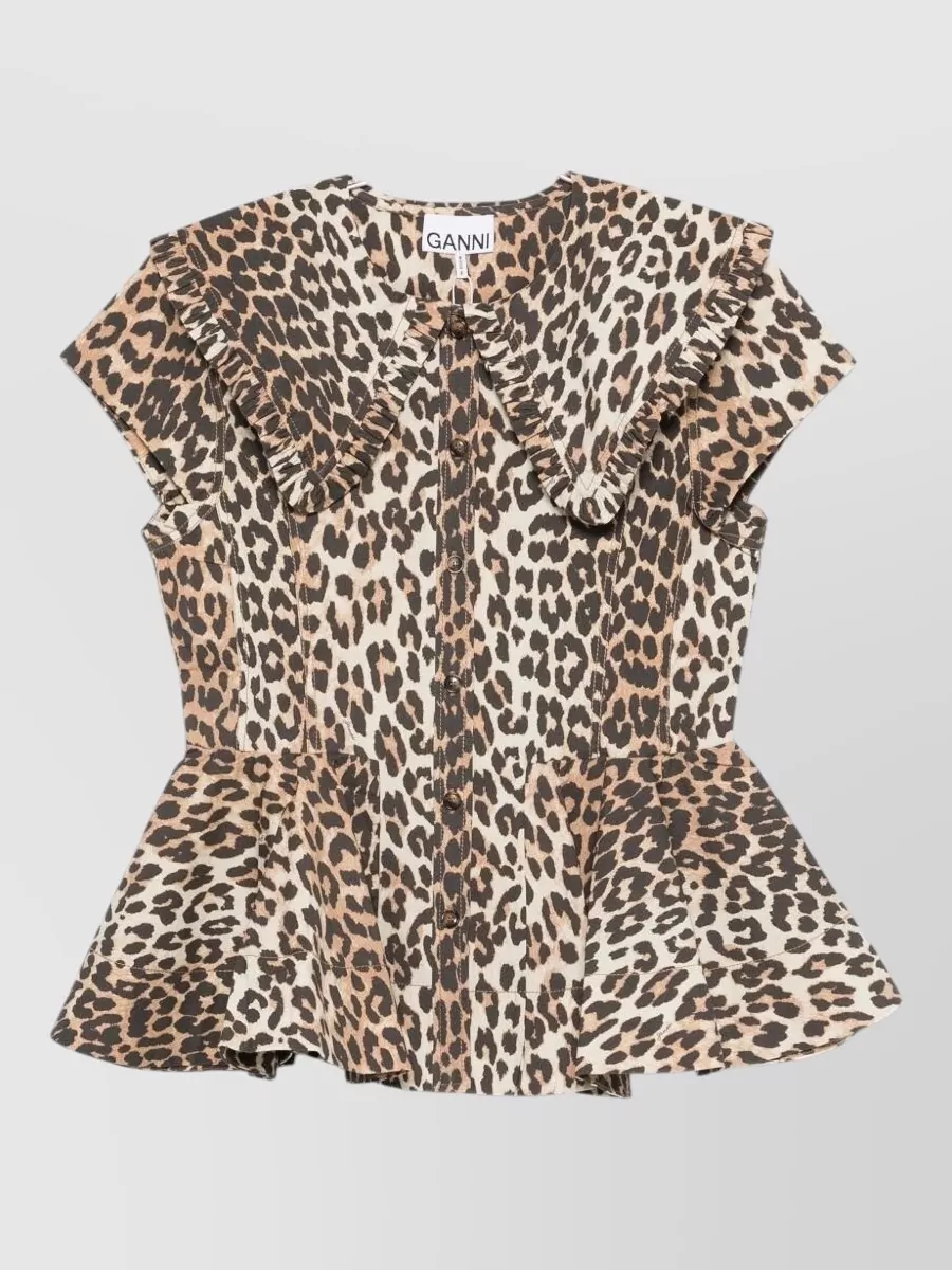 Ganni striped dress buttoned cuffs ruffled shoulders