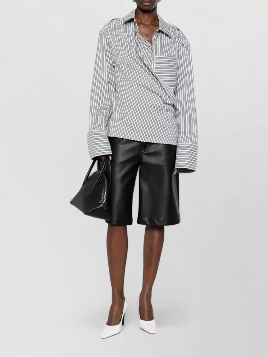 lace stripe cotton shirt wrap detail