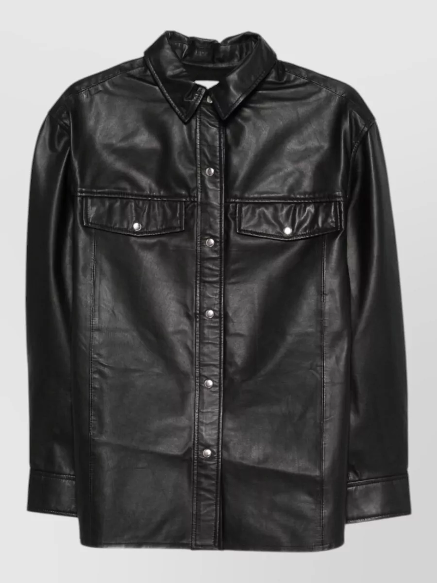 Iro leather shirt cabana style buttoned cuffs