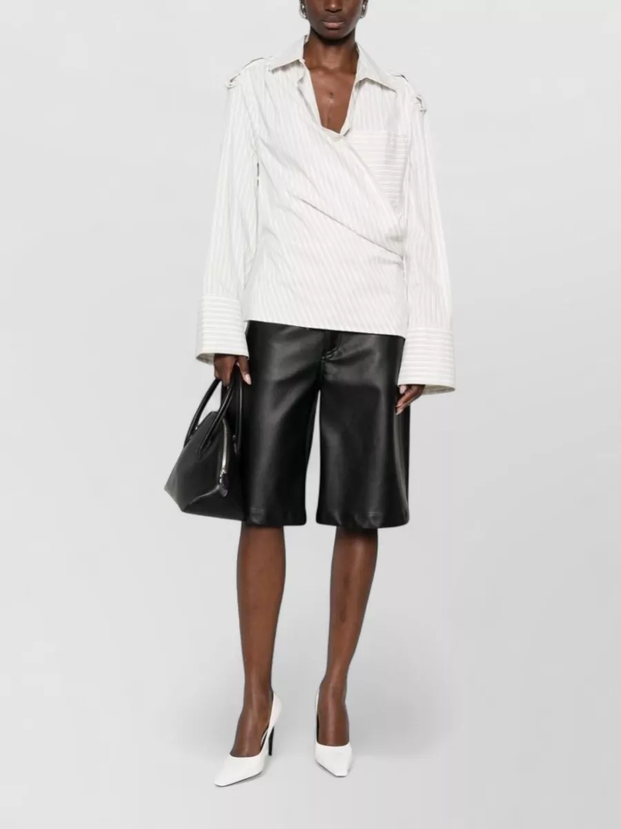 Iro lace stripe cotton shirt wrap detail